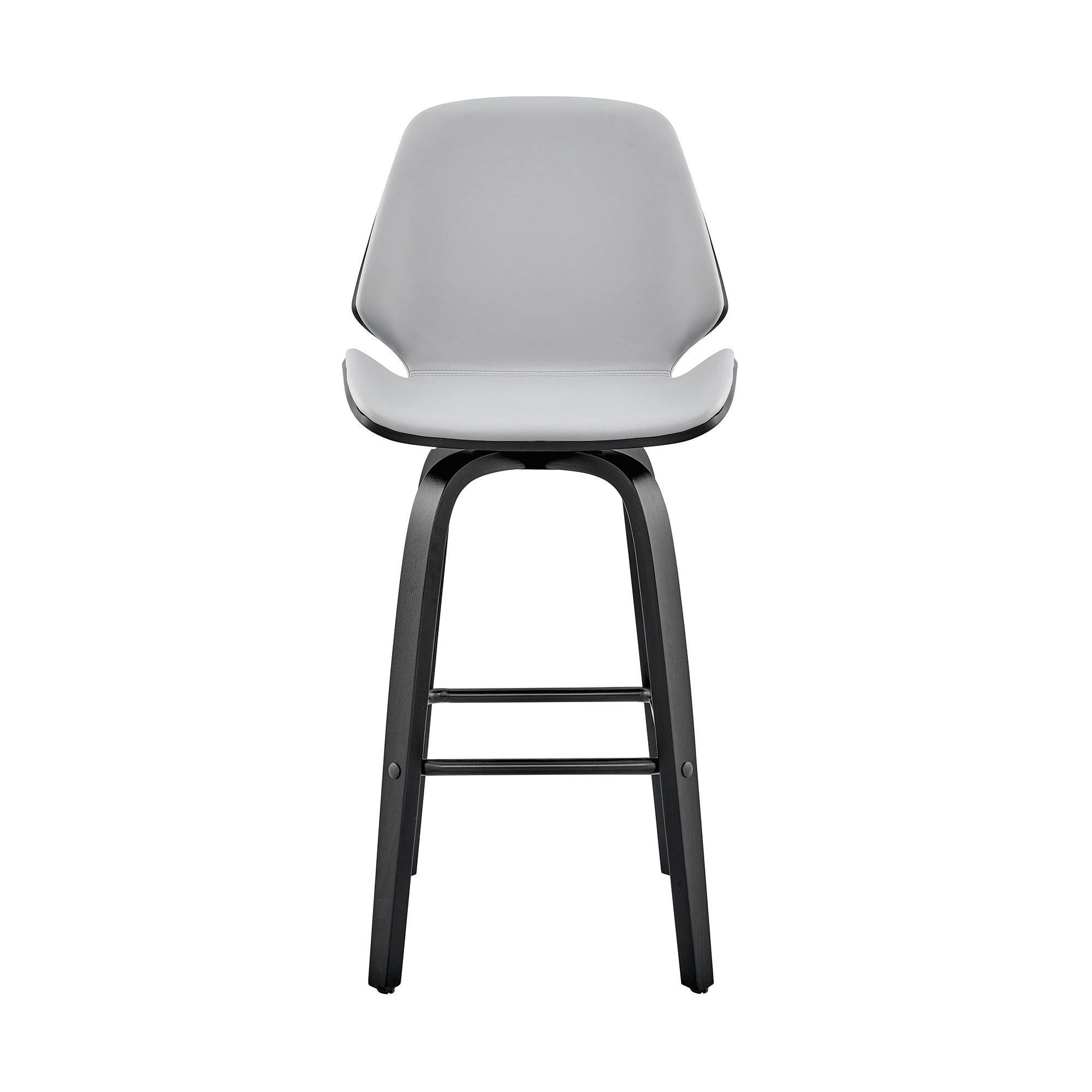Take yourself on a euphoric adventure spree every time you experience the luxury of this breathtaking Gray Faux Leather Swivel Seat Wooden Bar Stool that complements any style of décor. This stool features unparalleled upholstery of dove gray faux leather with supportive comfort and black wood base making it not only extra comfy and durable, but also making sure that it is the ideal stool for any occasion. It features several ergonomic features such as a 360-degree rotatable function that allows to turn to any direction conveniently without moving and a unique seat-back all designed to make sure your seating experience is full of nothing but comfort and relaxation. Give any modern or contemporary home an instant style update with this jaw-dropping bar stool that will seamlessly blend in with any interior theme. 40” x 19” x 20”