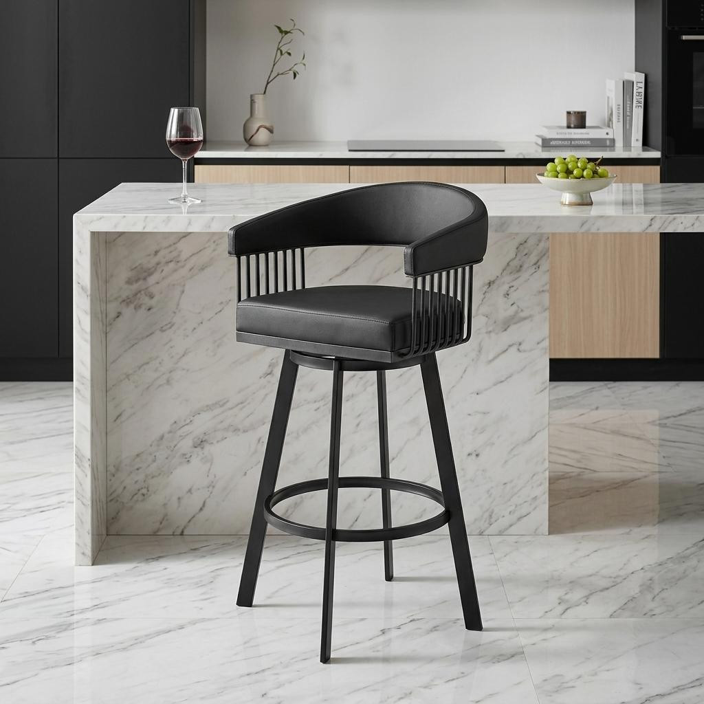 counter height swivel bar chair, height swivel bar chair, 26" black faux leather iron, swivel bar chair, leather iron low counter height |