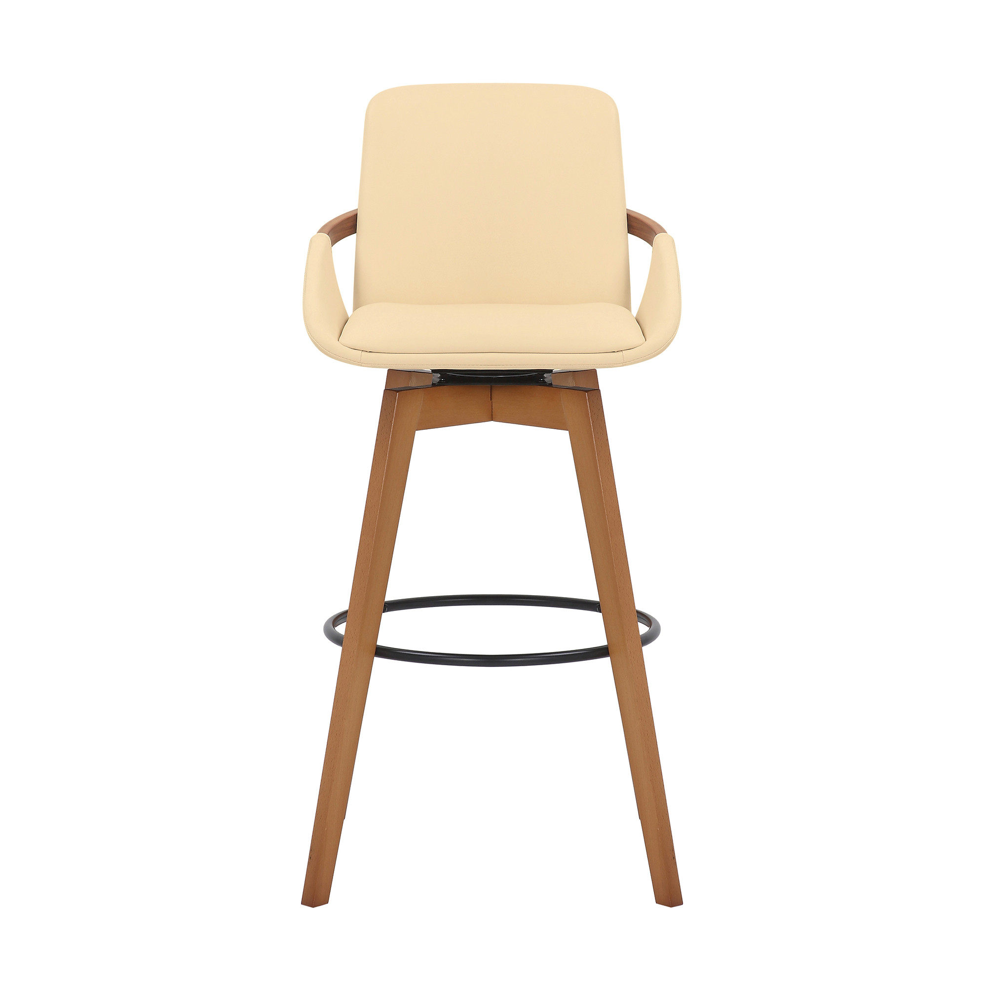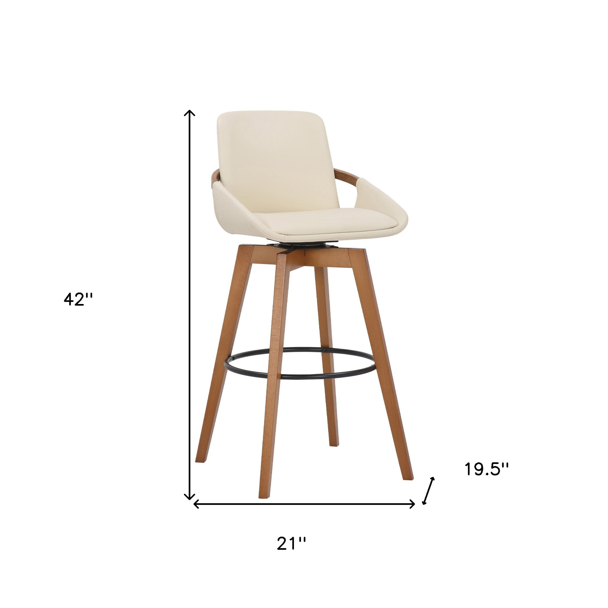 The perfect way to add some extra seating in your home, this 31-inch cream and black fabric and iron bar height swivel bar chair will elevate the look and vibe of your room. The cream fabric seat of this stool is a nice contrast to the high quality, black iron of the base. Not only good looking and stylish, this chair features a round shaped seat and a full_back for the ultimate in comfort and enjoyment. Designed with armrests for your comfort, this chair also features a footrest for comfort and convenience. 42-inch h x 19.5-inch w x 21-inch d.