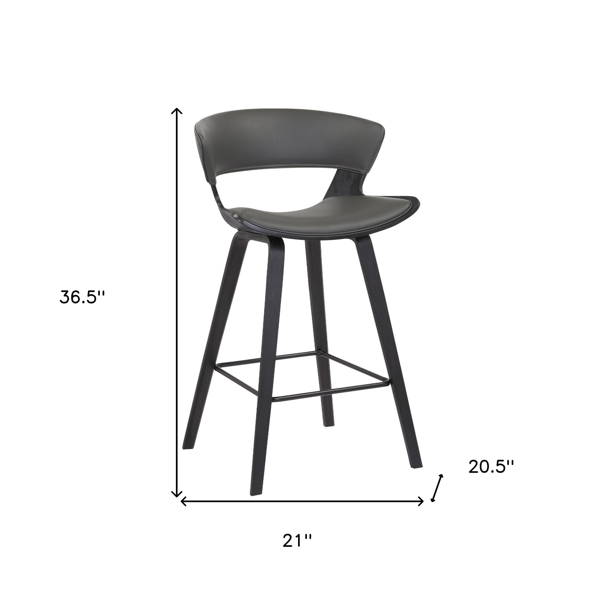With this 37" gray and black iron low back counter height bar chair with footrest you can add design and extra seating to your space. Quality construction from black iron combines with gray upholstered to give this stool a fresh and updated look. A low back mixed with a round shaped seat design makes this chair both comfortable and fashionable. Designed with a footrest for comfort and convenience. 36.5" H x 21" W x 20.5" D