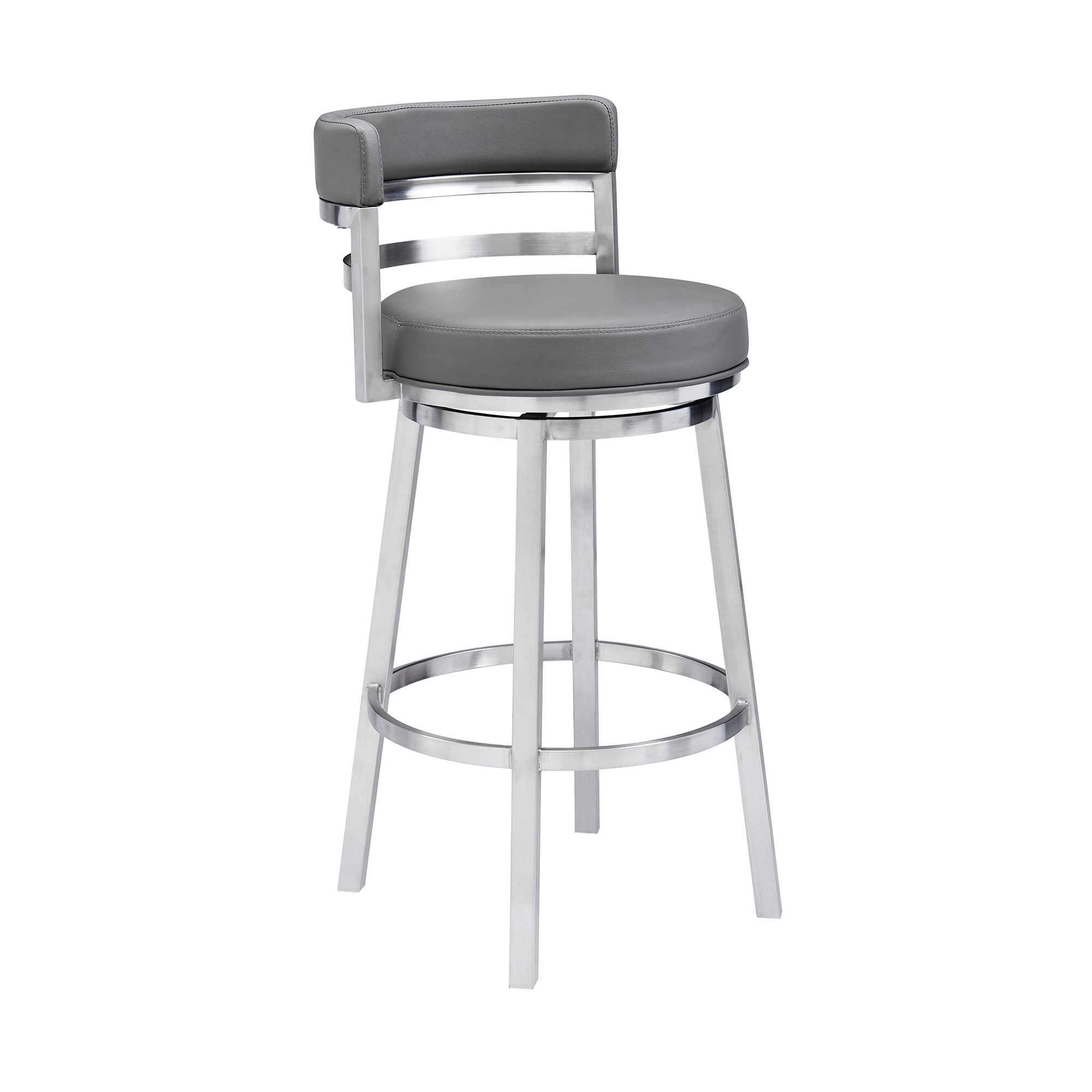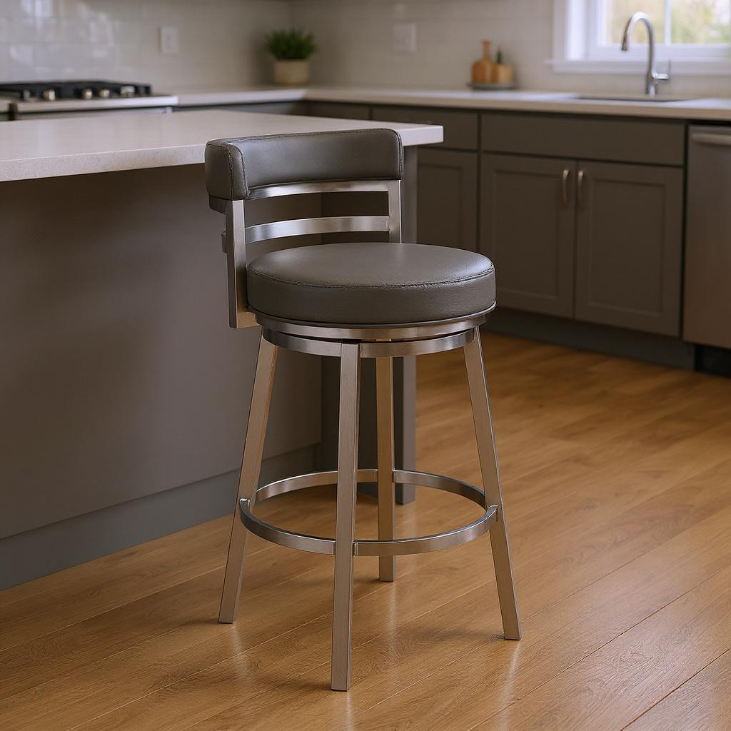 | Keywords: | 35" gray faux leather iron, gray faux leather iron swivel, 35" gray faux leather, low counter height bar chair, leather iron swivel low counter |