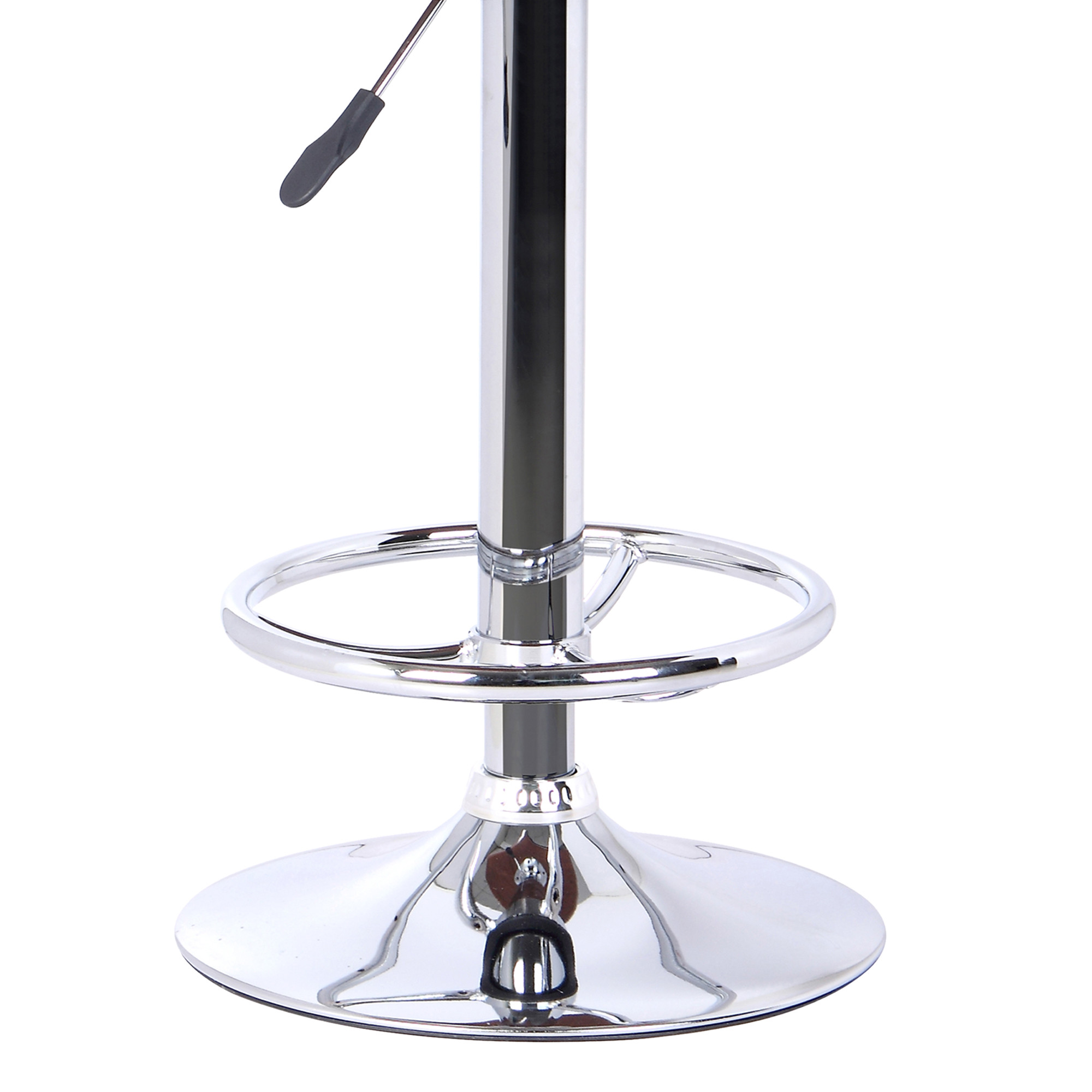 Induce a charming allure in your modern or contemporary home with this alluring Black Faux Leather Chrome Finished Bar Stool. Constructed using a metal base and a leatherette cushion with wooden accents, the chair has immense structural integrity and will serve you through the ages. Swiveling 360-degrees, the stool is adaptable to any room of your home or office. The cushion in black faux leather with a wooden accent is perched atop a contrasting chrome base that gives it a custom-made retro-modern look. The cushion ensures utter comfort with the high density padding and the adjustable height of the stool, the highest being 33 inches and lowest being 24 inches, is an added bonus. The captivating charisma and design of this swivel chair is ideal to be the centerpiece in a modern or contemporary style interior. 33” x 17” x 18”