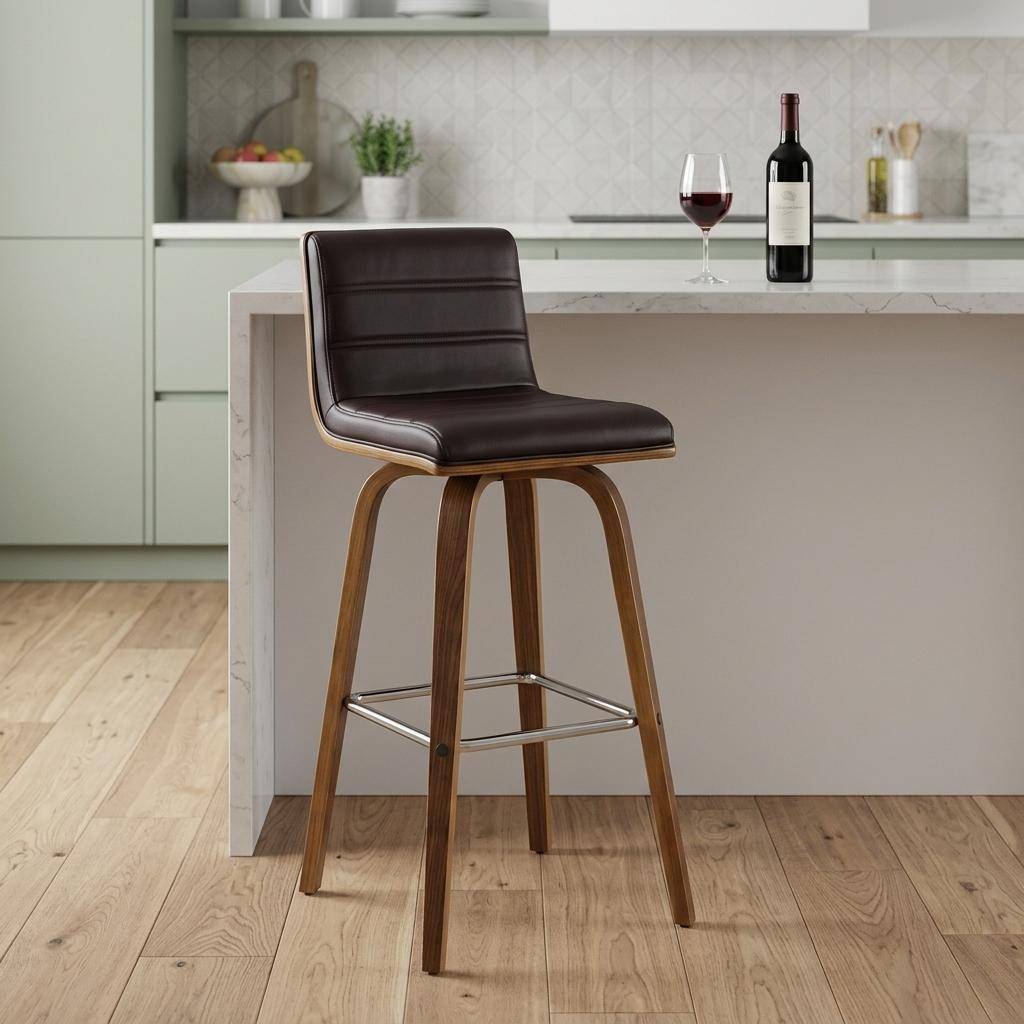 counter height swivel brown faux, leather walnut wood bar stool, vienna 26 counter height swivel, height swivel brown faux leather, wood bar stool |