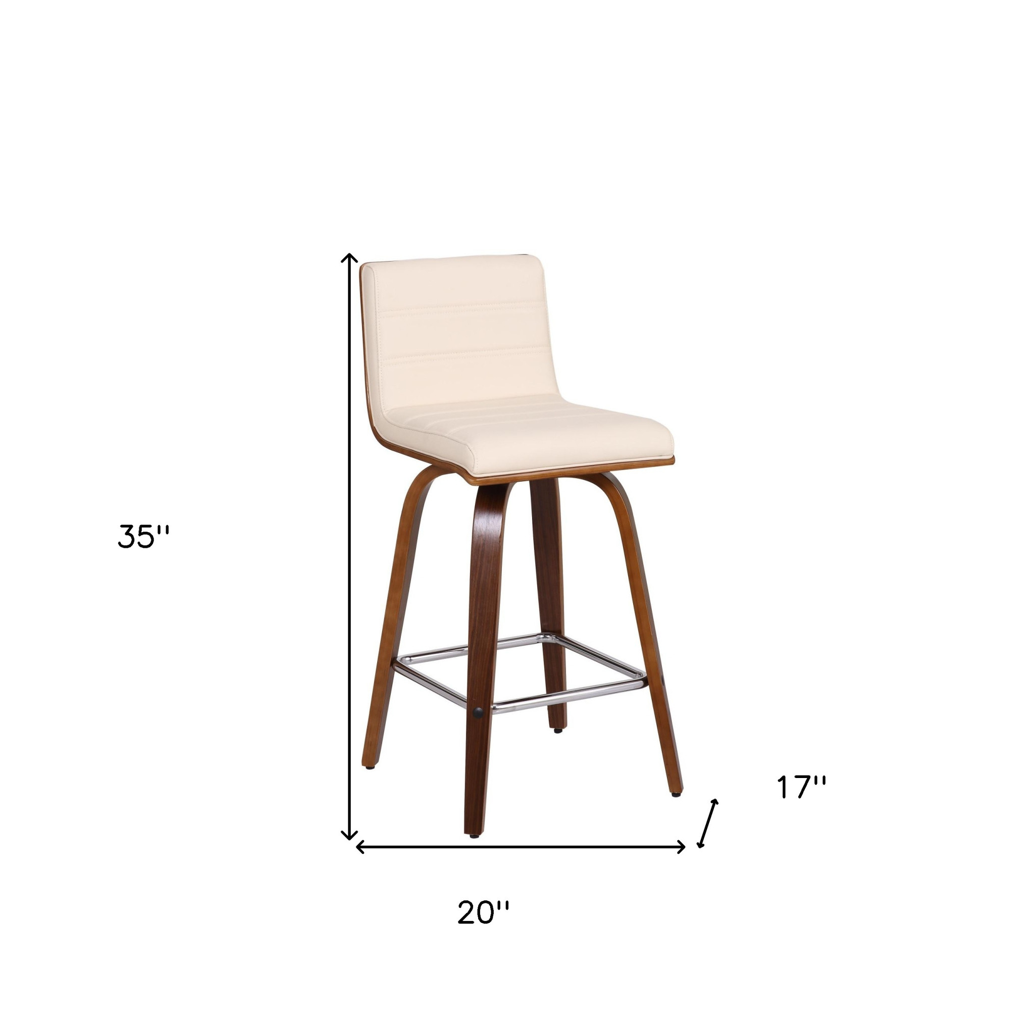 With this 26-inch cream and brown fabric and iron low back counter height swivel bar chair you can add design and extra seating to your space. The brown coloration of the high quality iron base marries nicely with the cream fabric seat. The round shape of the seat combines with a low_back to give this chair a comfortable and fashionable look. Designed with a footrest for comfort and convenience. 35-inch h x 17-inch w x 20-inch d.