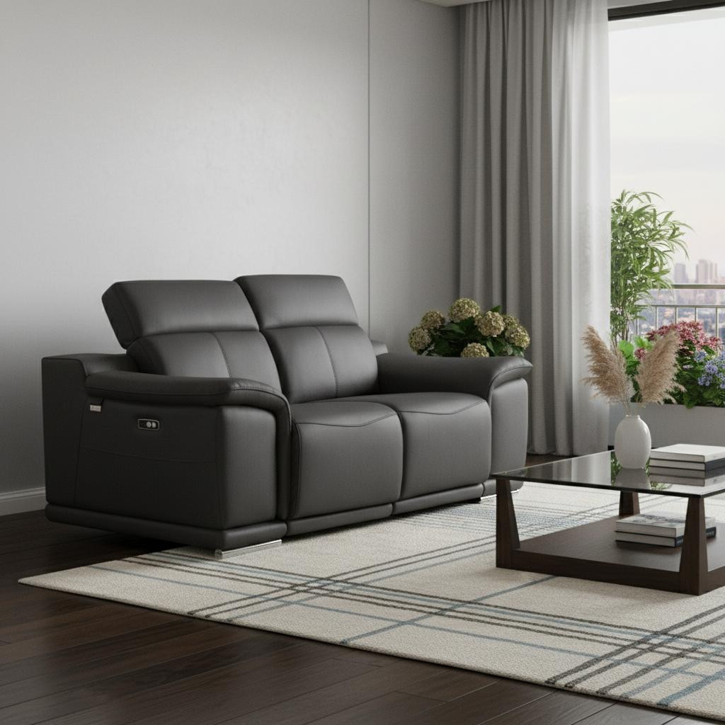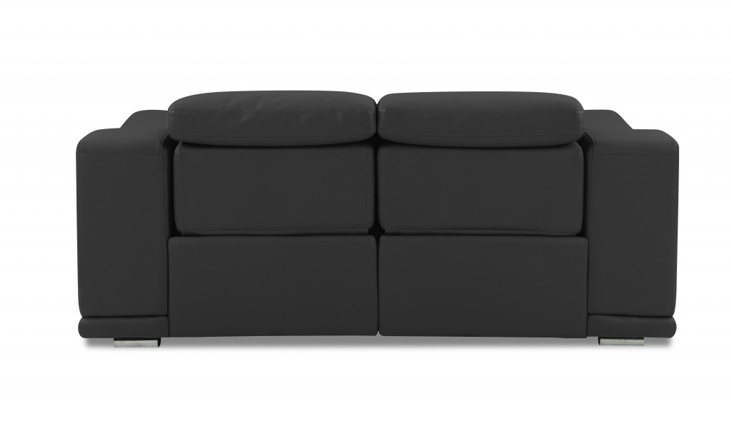 Superior construction from fabulously soft and high grade leather gives this 72-inch gray and silver italian leather power reclining loveseat a leg up on the competition. The high grade premium leather used makes your lounging luxuriously comfortable and adds an elegant appeal to your space. Pillow top arms offer a comfy place to rest and give this piece some interest and shape. Silver metal legs effortlessly elevate the room and add a touch of contemporary design. A great showpiece for your room, this sofa is a must have. 39.4-inch H x 72-inch W x 42.3-inch D