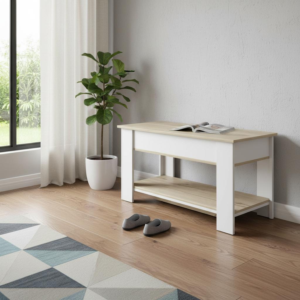 white wood storage bench, white wood storage bench flip, brown white wood storage bench, wood storage bench, wood storage bench flip |