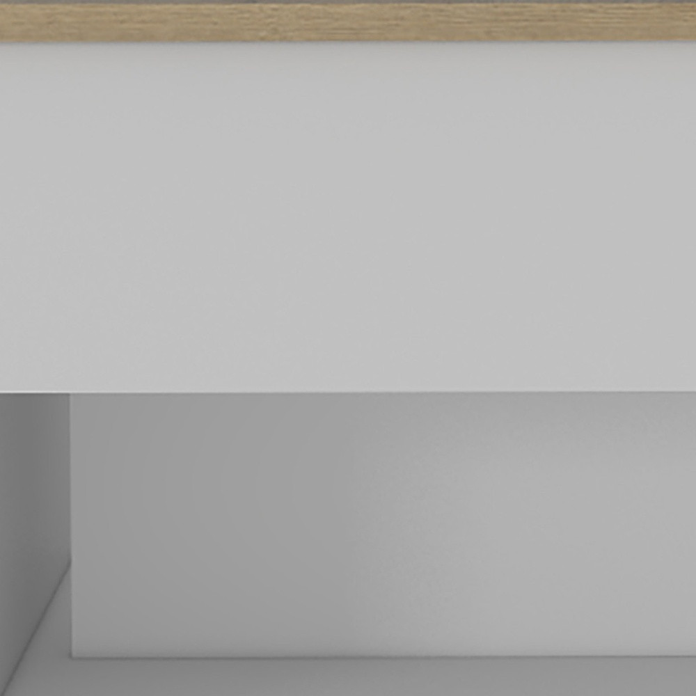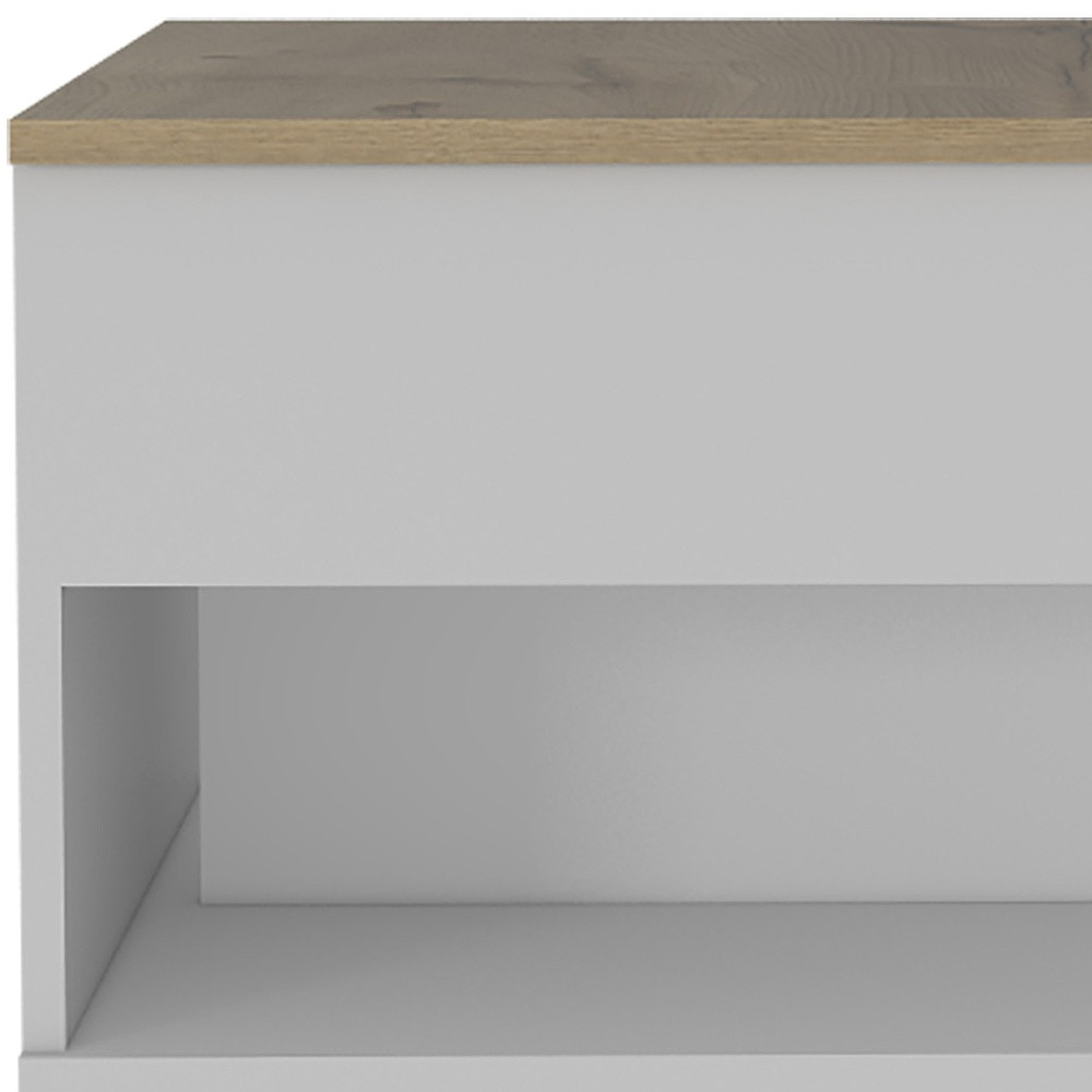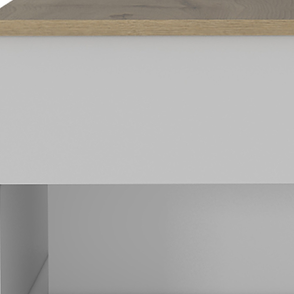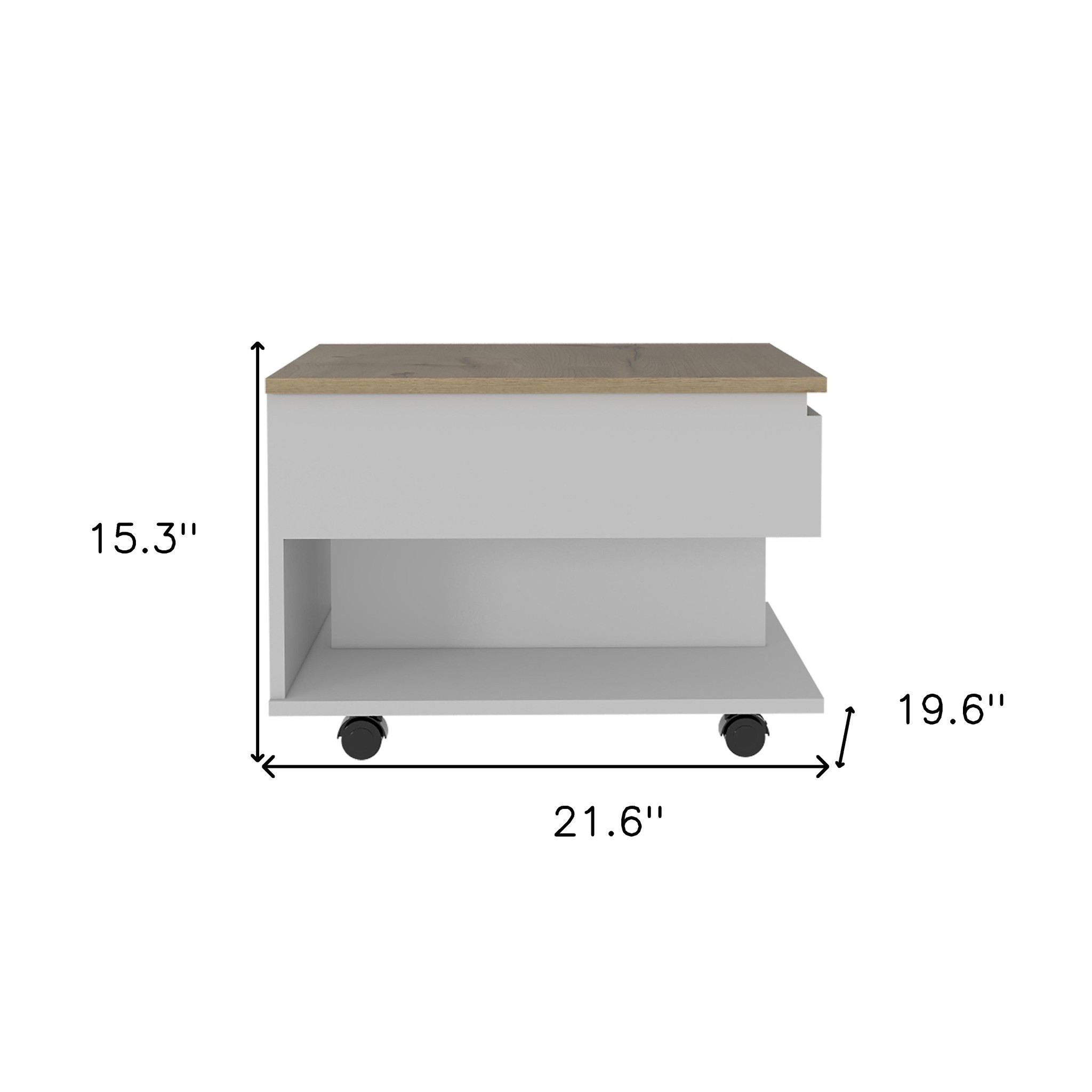 This good looking 22" white and light oak manufactured wood rectangular coffee table with drawer is sure to inspire compliments no matter where it sits. This coffee table is expertly made from high quality particle board. This rectangular table is an updated take on a classic. Offering a nice color combination, the top of this table is table is white and light oak, while the base compliments it nicely in white and light oak. Wheels give the table added versatility and mobility if needed. It has a lovely design that will definitely breathe some fresh air into your interior. This coffee table is the sturdy, reliable and stylish answer to your living room needs. 15.3" H x 21.6" W x 19.6" D