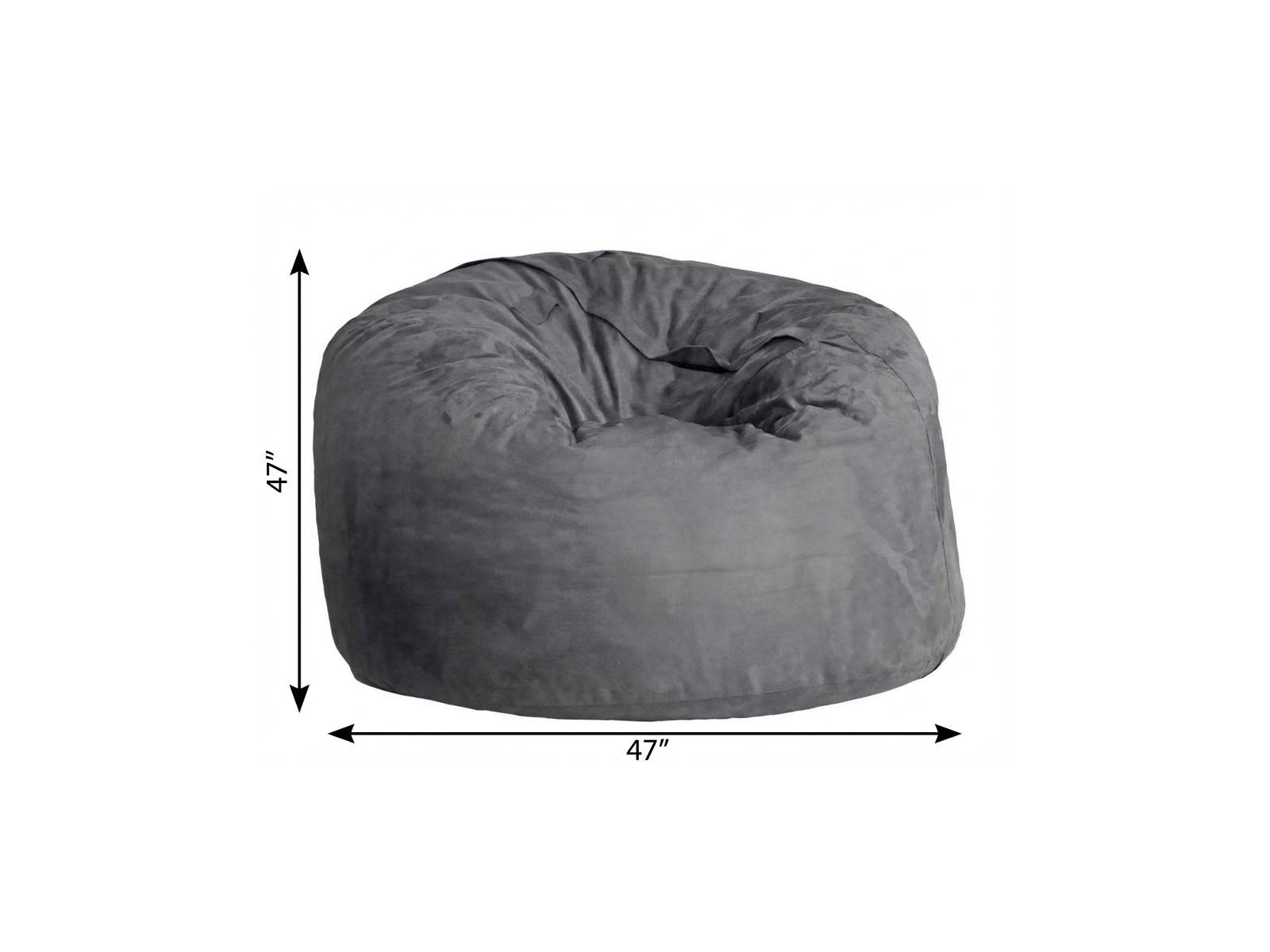 Relax in style with this charcoal classic bean bag floor chair, featuring a cozy microsuede upholstery that adds a touch of elegance to any room. The 47-inch bag size provides ample space for lounging comfortably, while the foam fill material ensures a soft and supportive seat. Designed as a classic bean bag floor chair, this piece is both versatile and stylish, perfect for casual seating in a living room, bedroom, or entertainment area. Upholstered in luxurious micro-suede material in a chic charcoal color, this floor chair adds a modern flair to your home decor. Experience ultimate relaxation with this upholstered floor chair that combines comfort and sophistication effortlessly. 47-inch h x 47-inch w x 47-inch d.