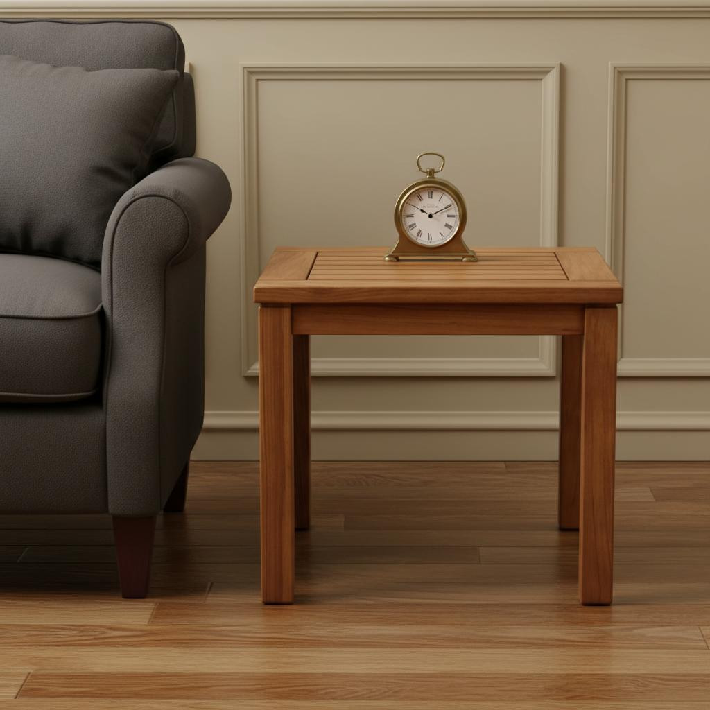 Distinctive in style, the 18" brown solid wood square end table radiates a versatile charm. This end or side table is expertly made from high quality solid wood. This table is made from solid wood in a brown color throughout the base and top. An ideal location for placing your snacks and drinks, and a place to keep your lamp, frames, or other accessories. This versatile table is a great accent for almost any room. 18.00" H x 20.00" W x 20.00" D