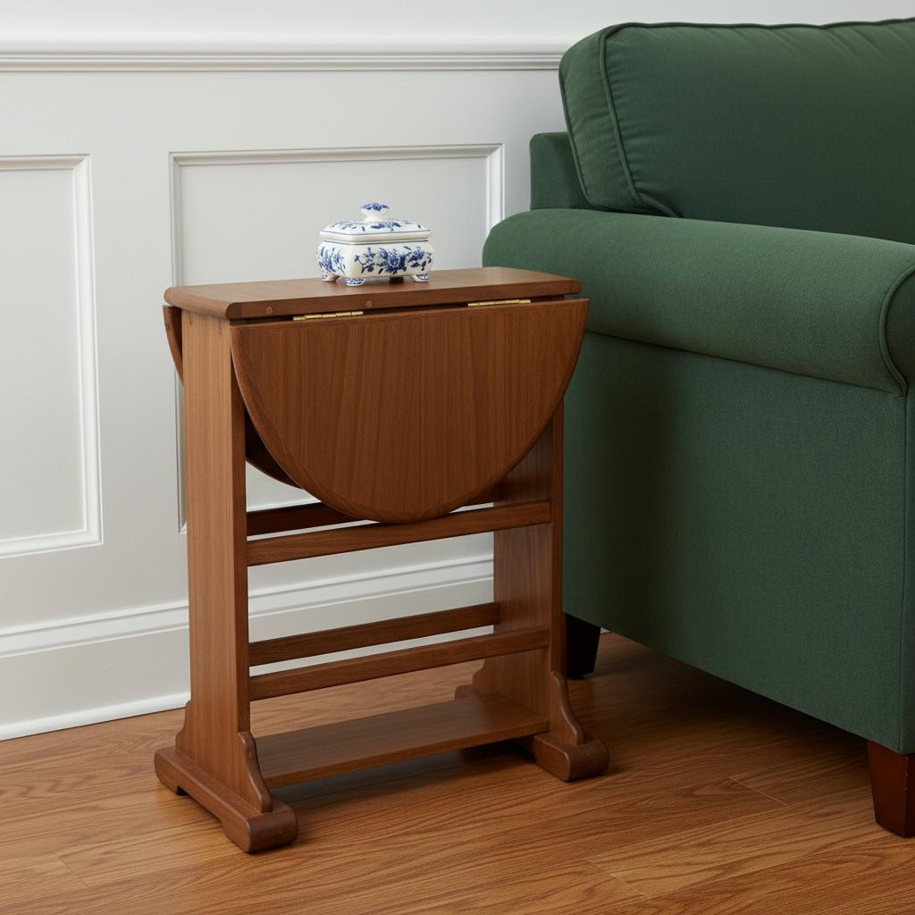 Optimize your space and add some charm to your room with the 21" brown solid wood oval drop leaf end table. It is crafted out of solid wood to create an inspiring atmosphere in any room. This table is made from solid and natural teak in a brown color throughout the base and top. Side tables are a great way to flank your sofa, use as an accent next to your favorite chair, or can even be used bedside. This versatile table is a great accent for almost any room. 20.50" H x 27.75" W x 18.50" D