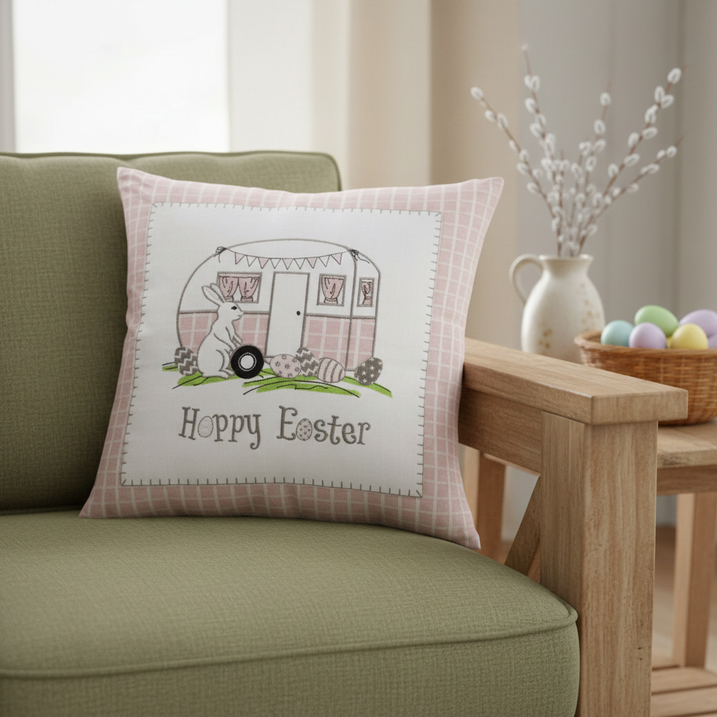 This festive 17-inch pink and white easter bunny plaid throw pillow with embroidery is a great way to celebrate and decorate for easter. This soft and durable decorative pillow is expertly covered with high grade, long lasting polyester that features pink and white plaid, embroidery, and a whimsical Easter bunny camper design. Decorative pillows are a great way to change up the look and feel of your space to quickly and easily decorate for the season. This soft polyester filled pillow not only meant to be decorative, but is made to be comfy and cozy all day long. 17.00-inch h x 17.00-inch w x 4.00-inch d.