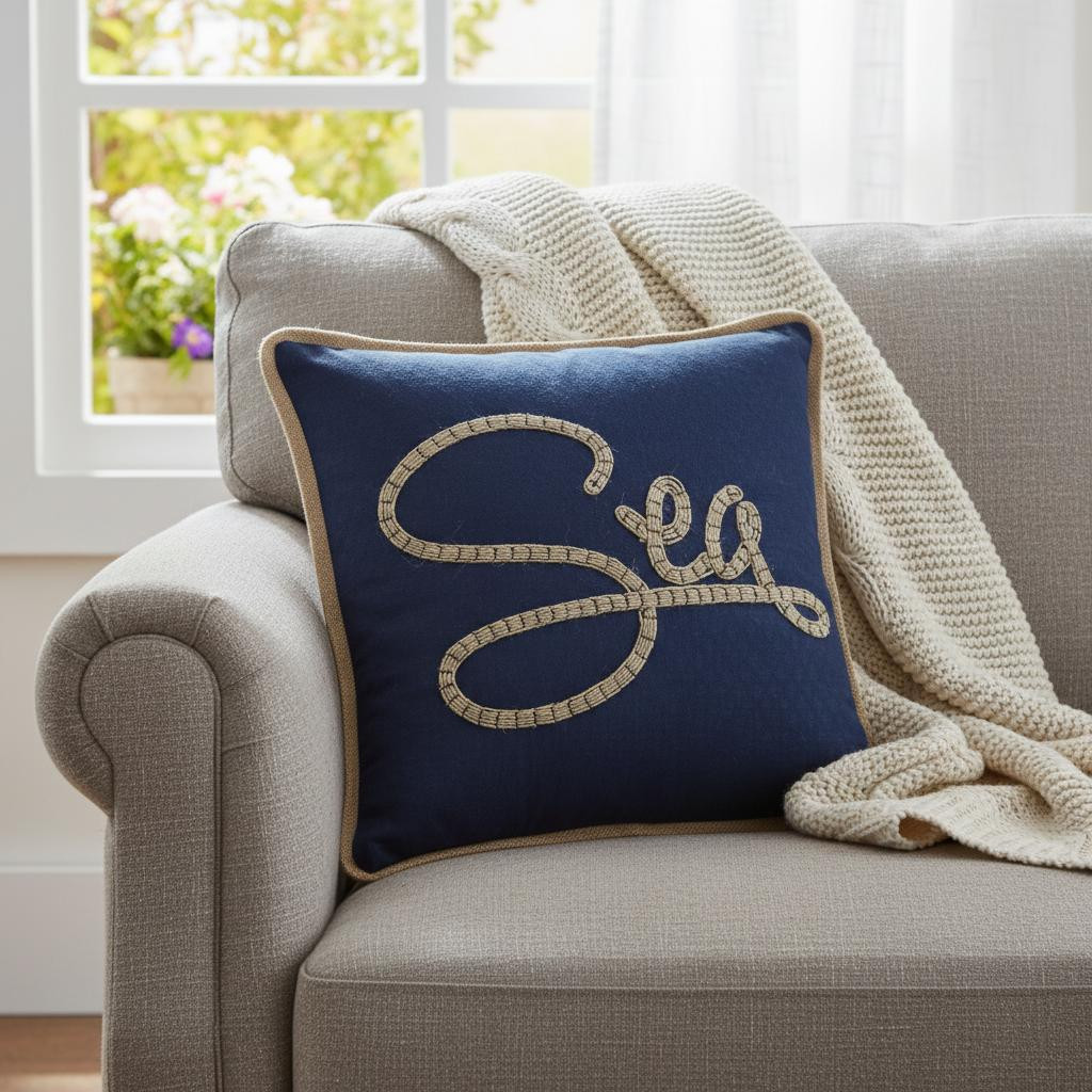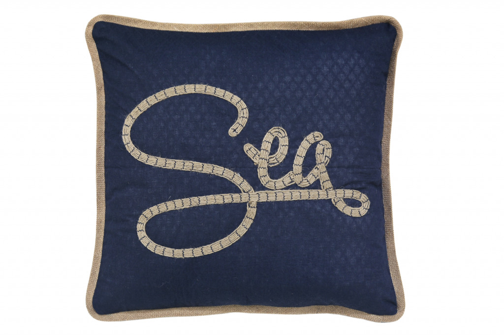 burlap blend throw pillow embroidery, polyester burlap blend throw pillow, blend throw pillow embroidery, blue brown sea polyester burlap, throw pillow embroidery |