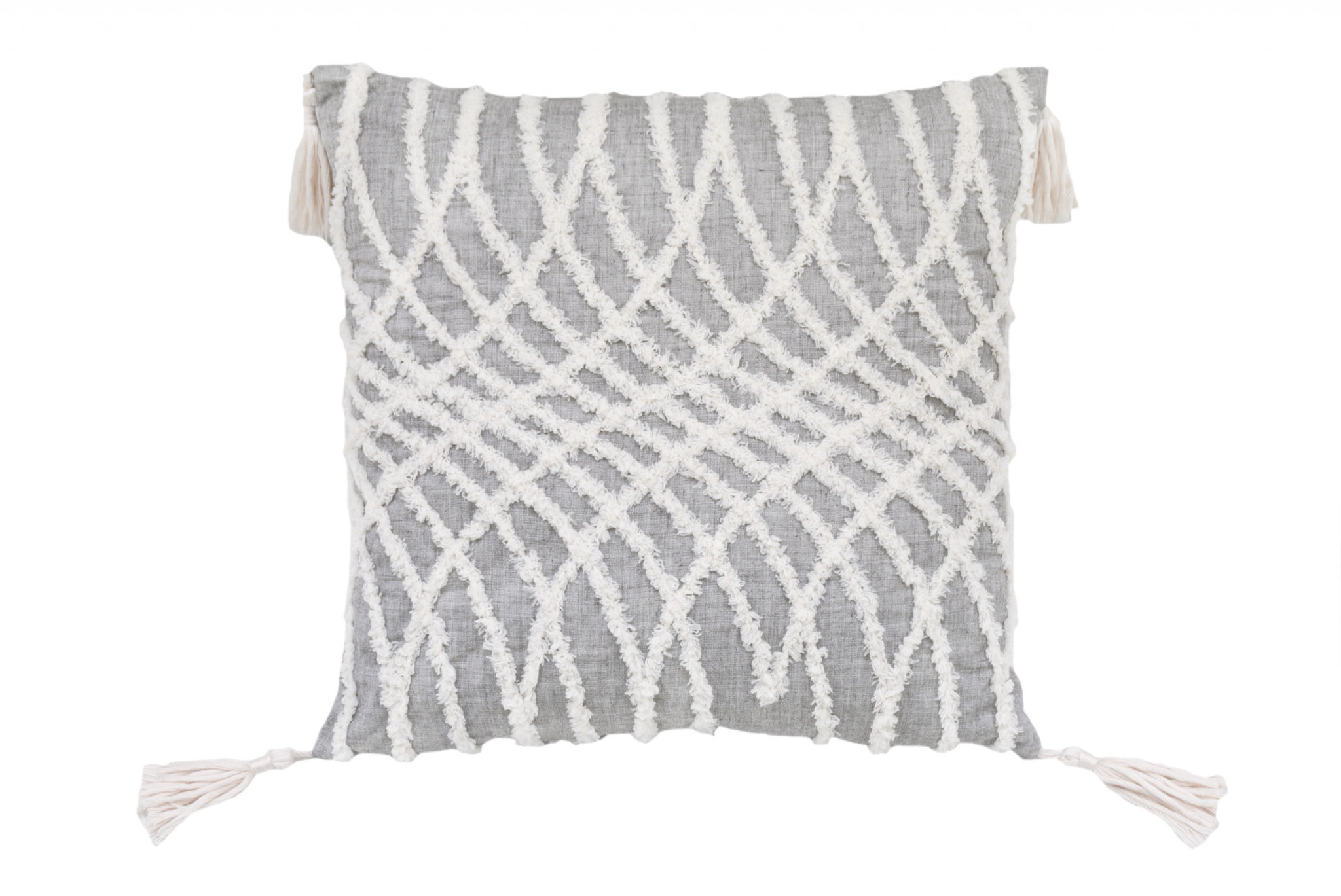 fabric throw pillow tassels, white fabric throw pillow tassels, throw pillow tassels, gray white fabric throw pillow, fabric throw pillow |