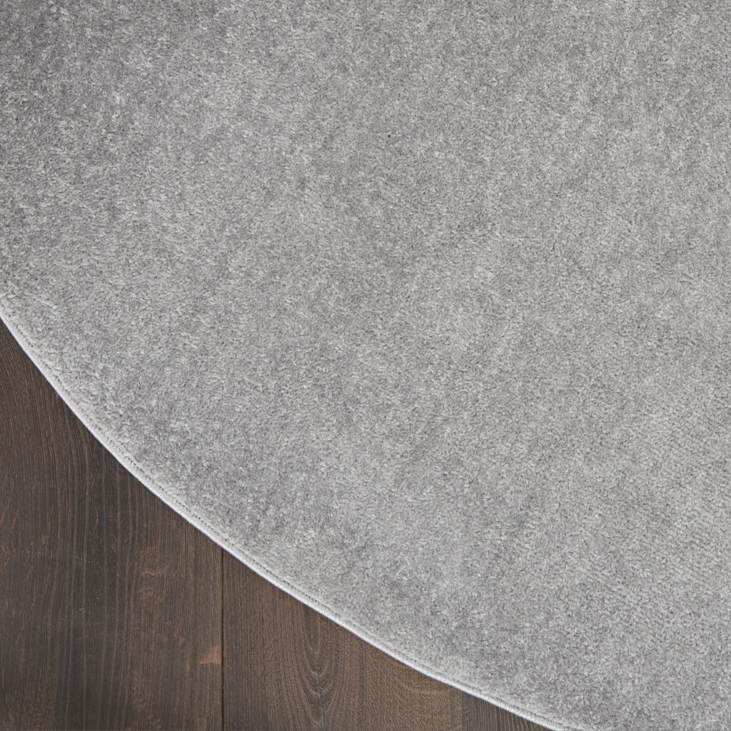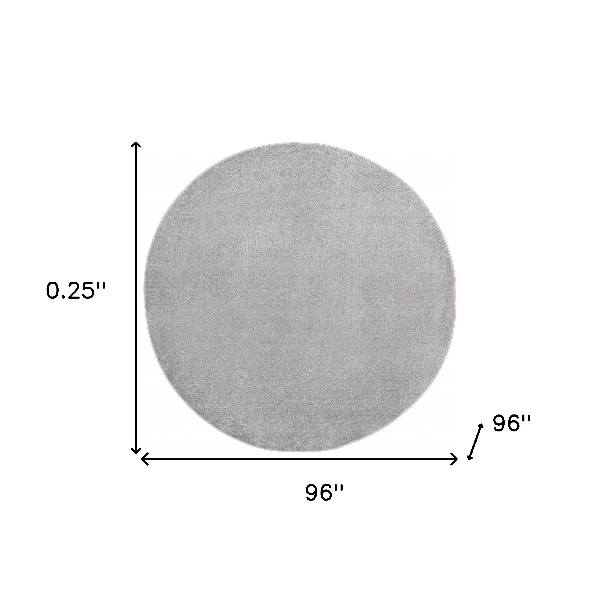 Set an inviting tone in your space with this 8-foot x 8-foot gray round indoor outdoor area rug. Versatile in use, durable, and easy to maintain, this rug is an ideal solution to add a decorative and inviting touch to your indoor or outdoor space. Crafted through machine-made construction, this rug ensures consistent quality and longevity. The round shape enhances the aesthetic appeal, making it a focal point in any setting. Its elegant gray color complements a variety of decor styles. 96-inch h x 96-inch w x 0.25-inch d.