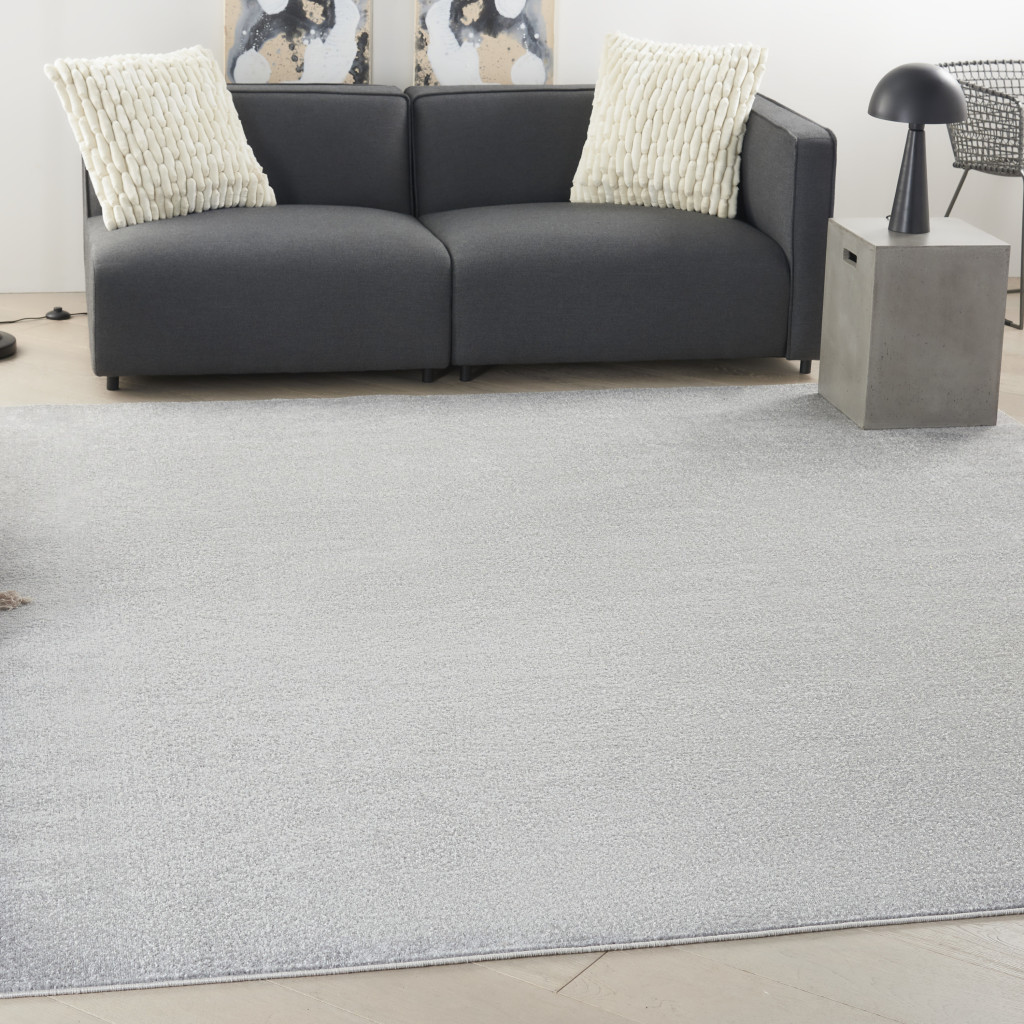 Add great coloration and comfortable texture to your space with this 9-foot gray square indoor outdoor area rug. Versatile in use, durable, and easy to maintain, this rug is an ideal solution to add a decorative and inviting touch to your indoor or outdoor space. The machine-made construction ensures it withstands the elements while maintaining its charm. Its square shape provides flexibility in placement, making it perfect for patios, balconies, or as a stylish accent in living areas. 108-inch h x 108-inch w x 0.25-inch d.