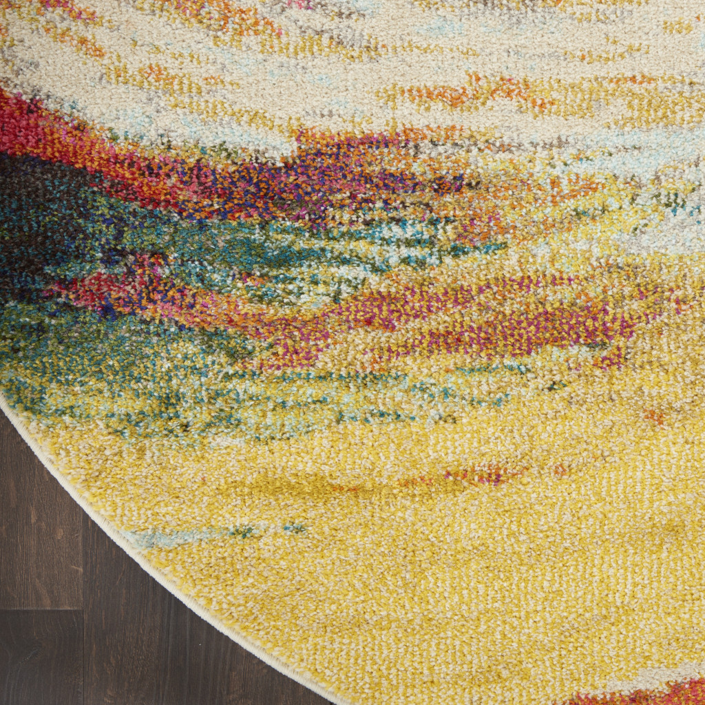 Add some artistry to your room with this 4' x 4' wave round abstract power loom non skid area rug. This geometric round shaped rug features a abstract pattern in wave that combines a good looking print with a unique and updated shape. The mix of shape, color, and design gives this rug refreshing visual interest. This superior Turkish rug represents the highest quality and is built to last. Area Rugs help to give warmth and sense of home to your space. .50" H x 48.00" W x 48.00" D