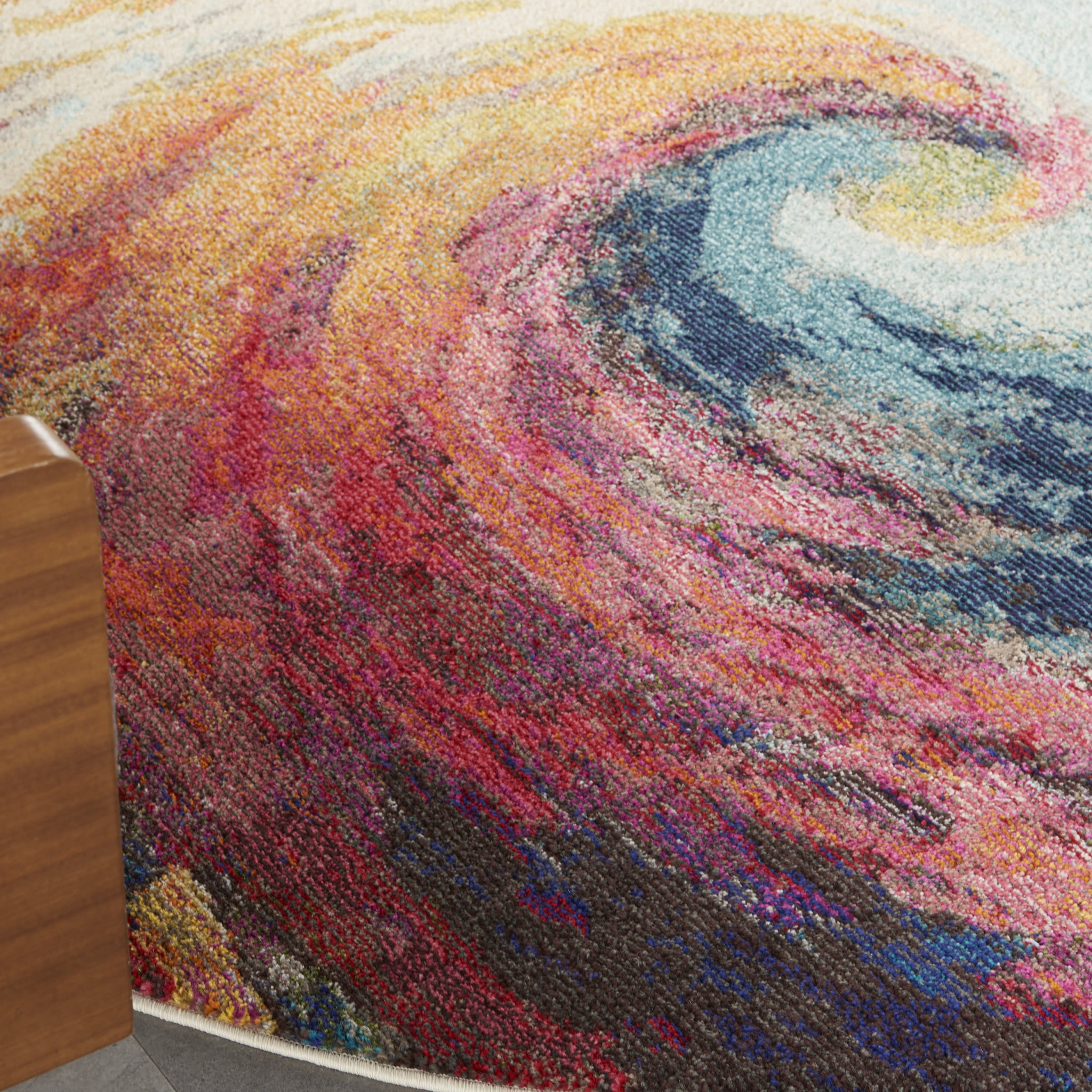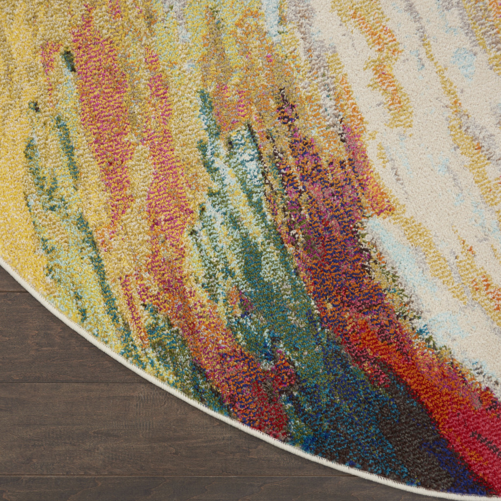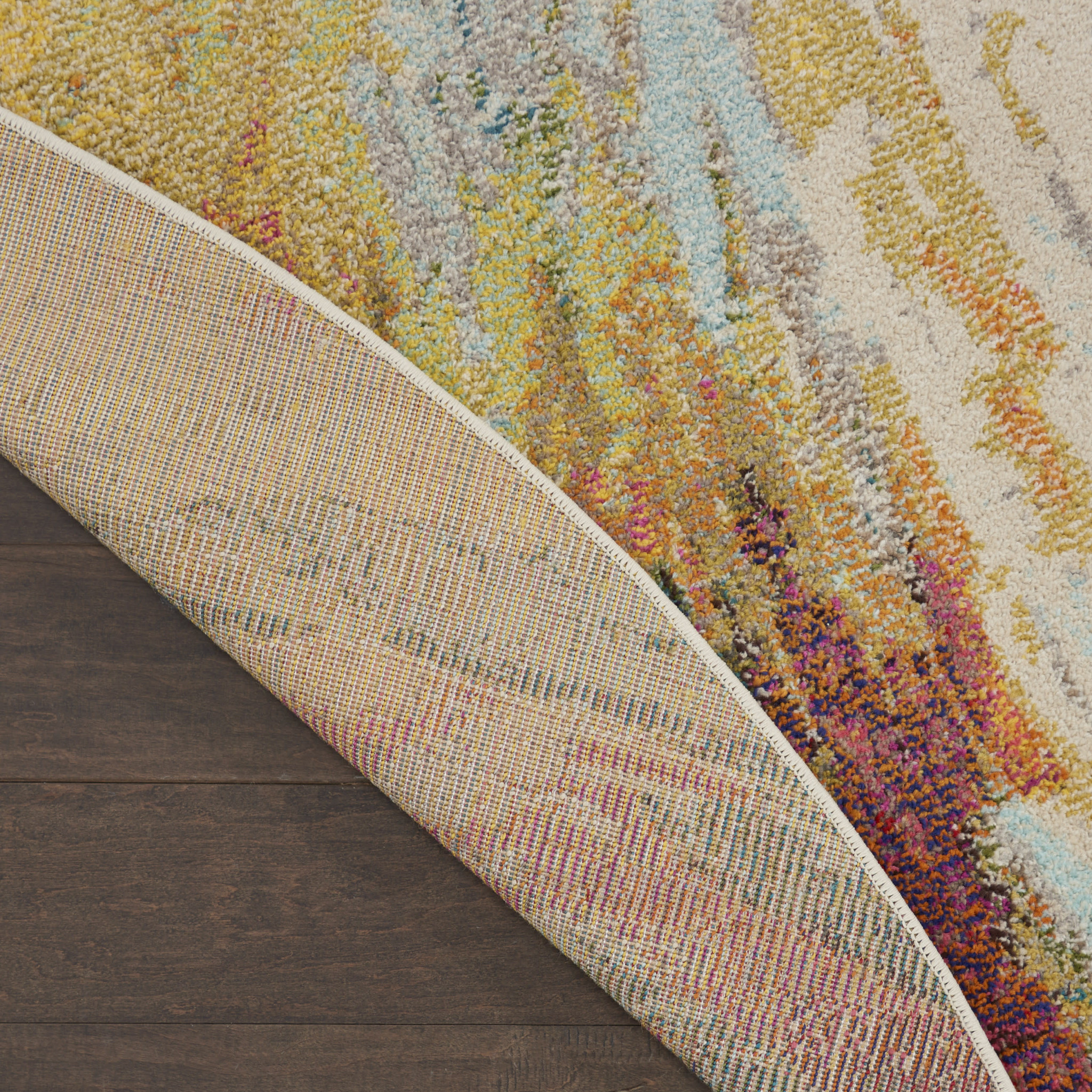 Add great coloration and comfortable texture to your space with this 8' x 8' wave round abstract power loom non skid area rug. This geometric round shaped rug features a abstract pattern in wave that combines a good looking print with a unique and updated shape. The mix of shape, color, and design gives this rug refreshing visual interest. Made in Turkey, this rug offers high quality combined with good looking designer sensibilities. Area Rugs help to give warmth and sense of home to your space. .50" H x 94.00" W x 94.00" D