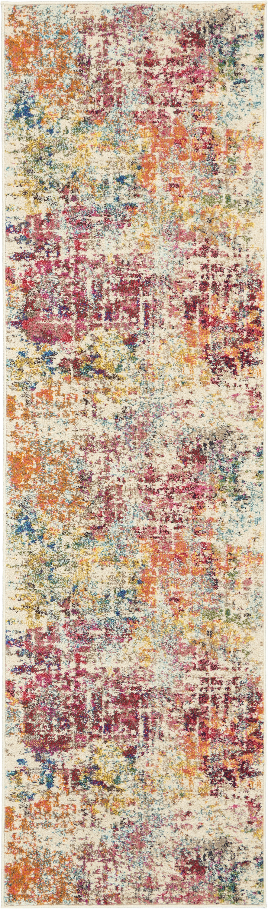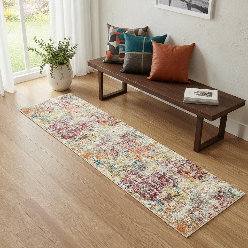 This 2' x 6' pink abstract power loom distressed non skid area rug, is a great way to add warmth to a room. This rectangle shaped rug features a abstract design in pink to give it visual interest. A classic shape marries with good looking design for your space This superior Turkish rug represents the highest quality and is built to last. Place this area rug against a hardwood or tile floor and it will enliven your living space with style and sophistication. .50" H x 24" W x 72" D