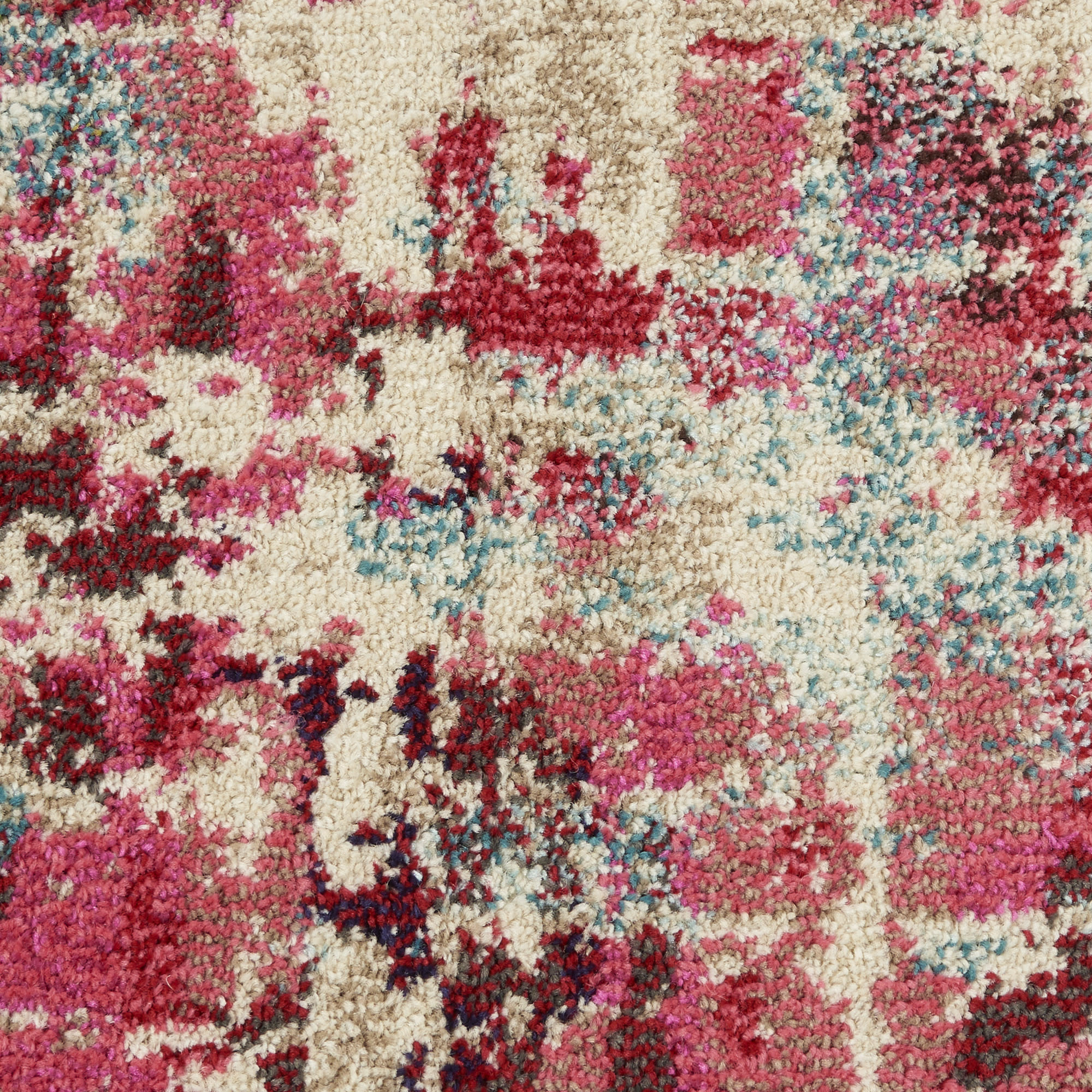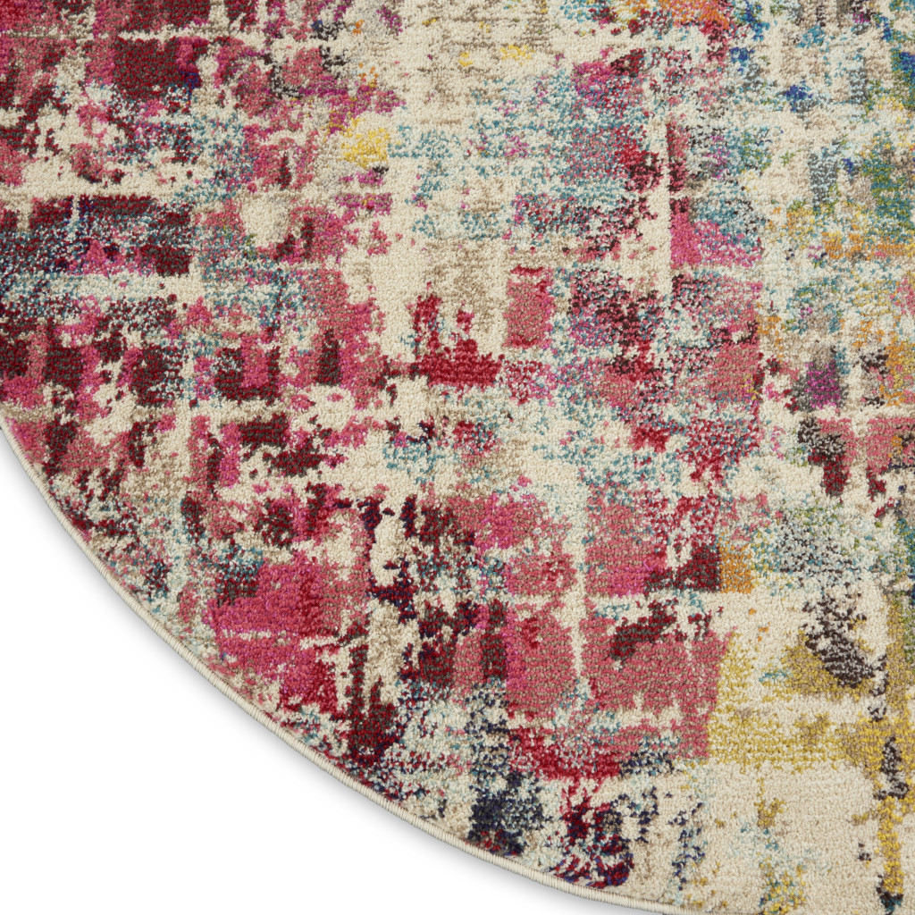 Add some artistry to your room with this 5' x 5' pink round abstract power loom distressed non skid area rug. This geometric round shaped rug features a abstract pattern in pink that combines a good looking print with a unique and updated shape. The mix of shape, color, and design gives this rug refreshing visual interest. This superior Turkish rug represents the highest quality and is built to last. Area Rugs help to give warmth and sense of home to your space. .50" H x 63" W x 63" D