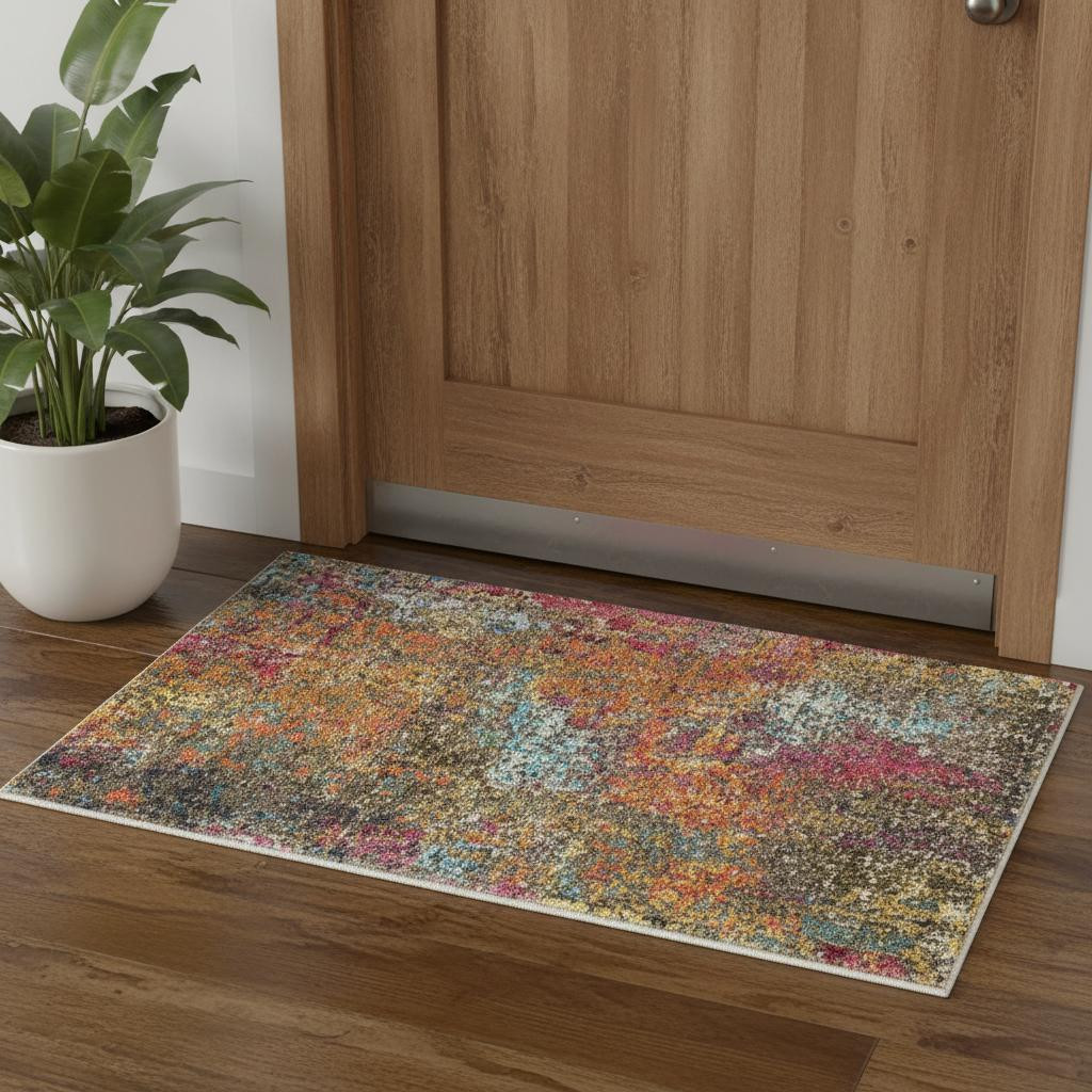 This 2' x 4' sunset abstract power loom non skid area rug, is a great way to add warmth to a room. This rectangle shaped rug features a abstract design in sunset to give it visual interest. A classic shape marries with good looking design for your space Made in Turkey, this rug offers high quality combined with good looking designer sensibilities. Place this area rug against a hardwood or tile floor and it will enliven your living space with style and sophistication. .50" H x 26" W x 45" D