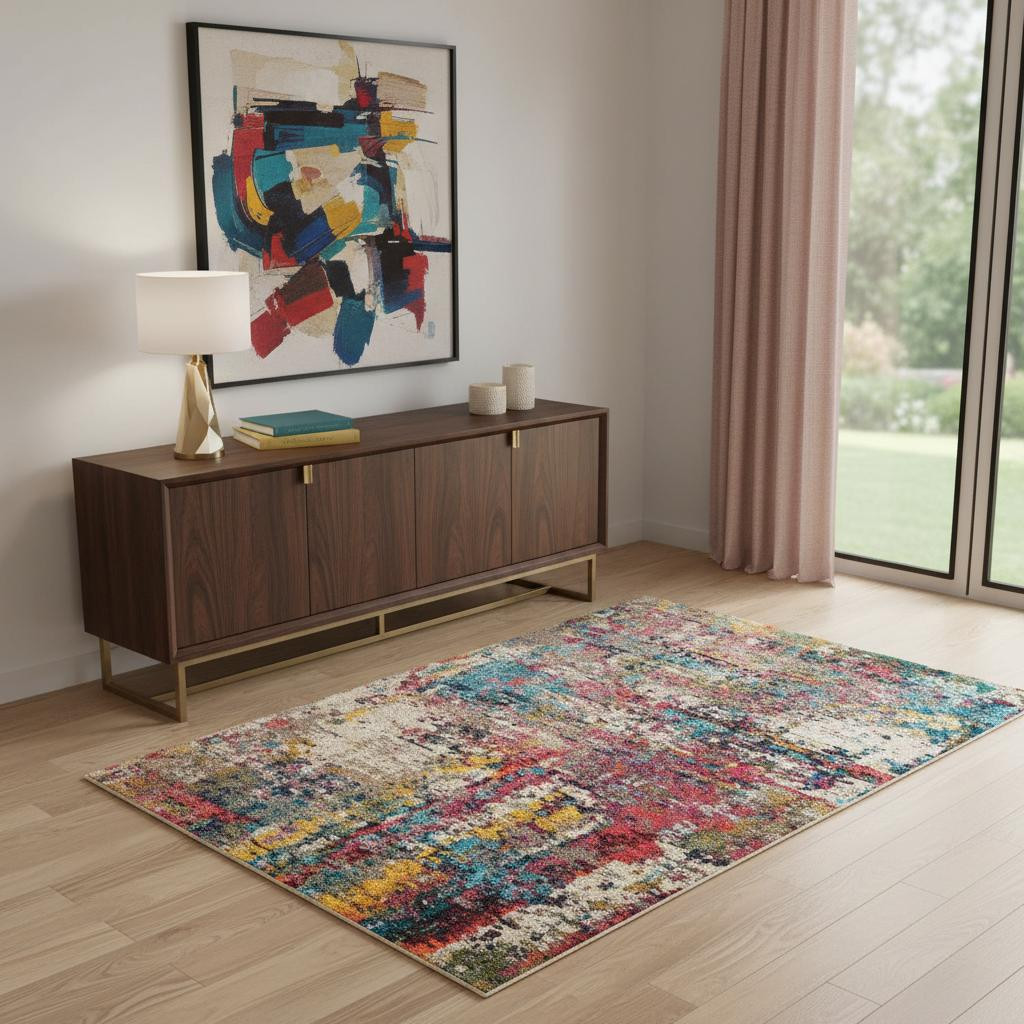 Add great coloration and comfortable texture to your space with this 4' x 6' sunset abstract power loom non skid area rug. This rectangle shaped rug features a abstract design in sunset to give it visual interest. A classic shape marries with good looking design for your space Made in Turkey, this rug offers high quality combined with good looking designer sensibilities. Place this area rug against a hardwood or tile floor and it will enliven your living space with style and sophistication. .50" H x 47" W x 71" D