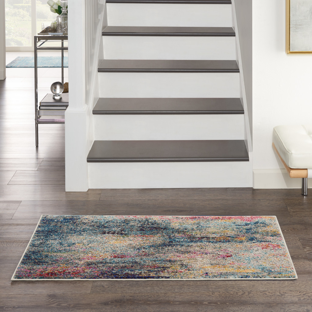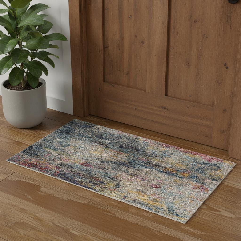 This 2' x 4' blue and beige abstract power loom non skid area rug, is a great way to add warmth to a room. This rectangle shaped rug features a abstract design in blue and beige to give it visual interest. A classic shape marries with good looking design for your space Made in Turkey, this rug offers high quality combined with good looking designer sensibilities. Area Rugs help to give warmth and sense of home to your space. .50" H x 26.00" W x 45.00" D