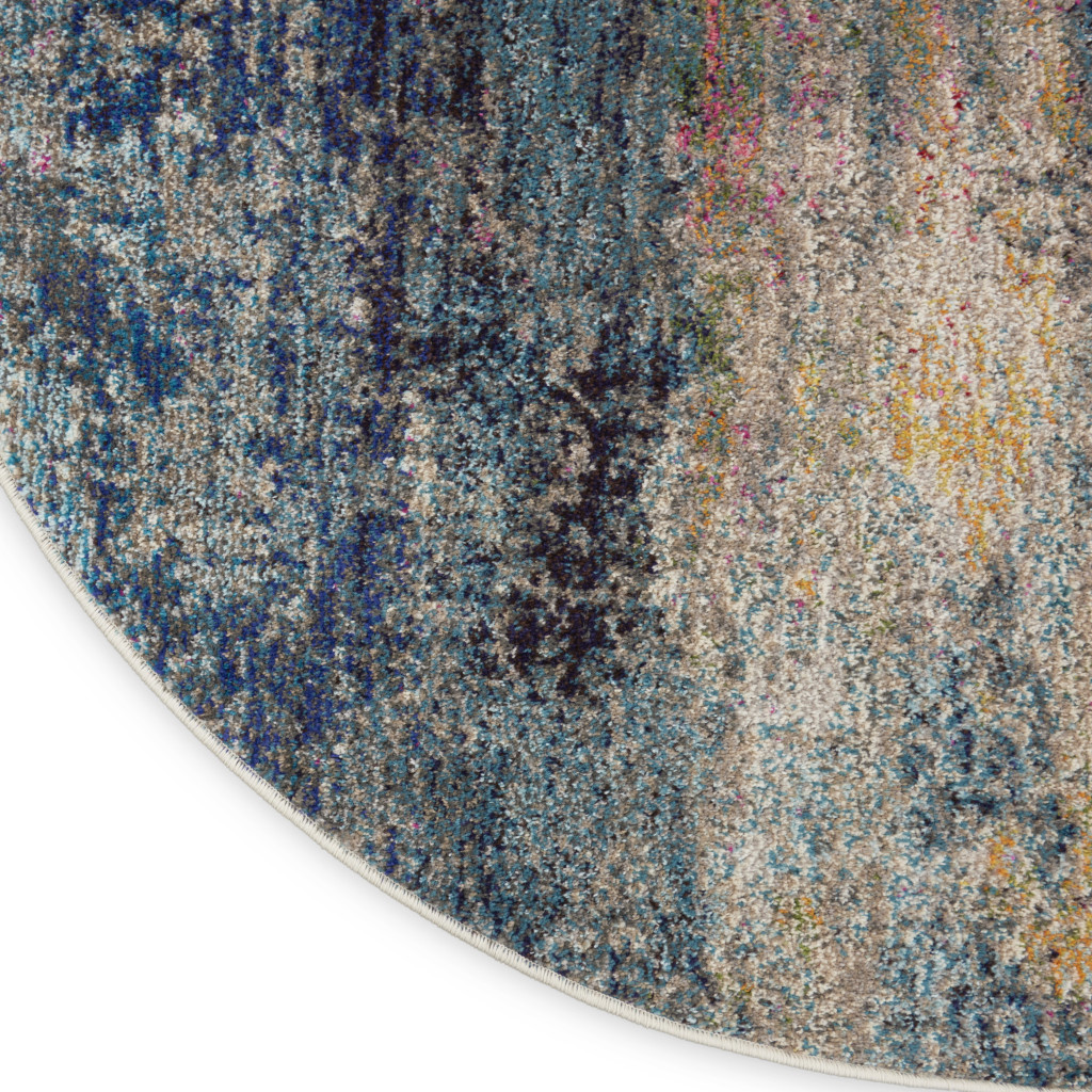 Add great coloration and comfortable texture to your space with this 5-foot blue and ivory abstract round rug. Built to last, this rug crafted from polypropylene fibers is known for its durability and long lasting appeal. Rugs are a great way to showcase your style, hide imperfections, warm your home and reduce noise. This geometric round shaped rug features a abstract pattern in blue and ivory that combines a good looking print with a unique and updated shape. The mix of shape, color, and design gives this rug refreshing visual interest. 63-inch h x 63-inch w x 0.5-inch d.