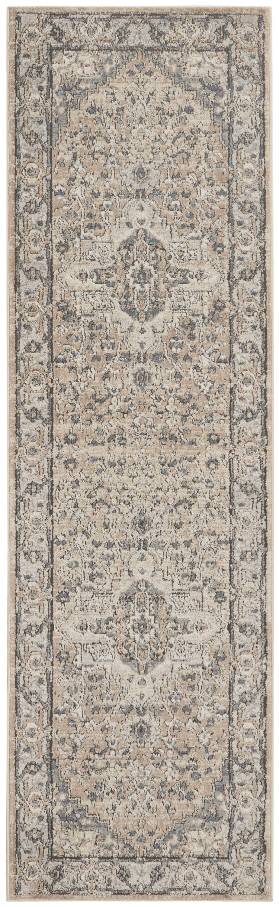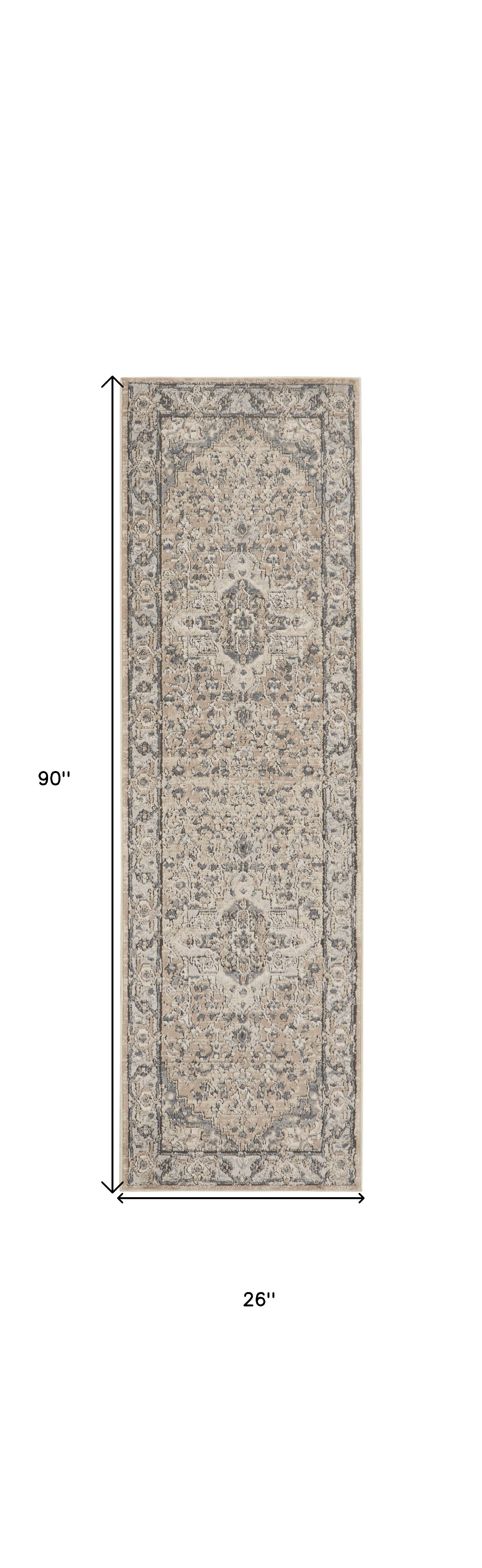 Set an inviting tone in your space with this 2' x 8' beige and grey oriental power loom non skid runner rug. This runner shaped rug features a oriental design in beige and grey to give it visual interest. A classic shape marries with good looking design for your space Made in Turkey, this rug offers high quality combined with good looking designer sensibilities. Area Rugs help to give warmth and sense of home to your space. .32" H x 26.00" W x 90.00" D