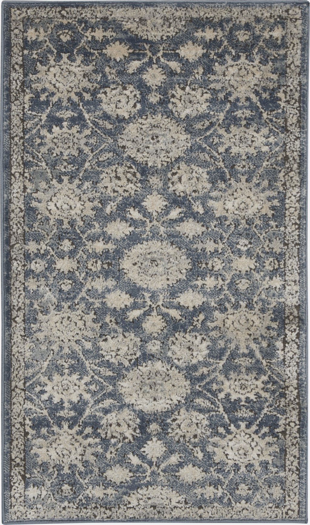 Add great coloration and comfortable texture to your space with this 2-foot x 4-foot blue and beige oriental distressed area rug. Ideal for spaces with kids and pets, this rug is stain resistant to help repel dirt and spilled liquids. Built to last, this rug crafted from polypropylene and polyester fibers is known for its durability and long lasting appeal. Rugs are a great way to showcase your style, hide imperfections, warm your home and reduce noise. This smaller sized, contemporary styled rug is just what you need for your walkway, bedside, in front of door, cabinet, refrigerator, or chair. 26-inch h x 45-inch w x 0.32-inch d.