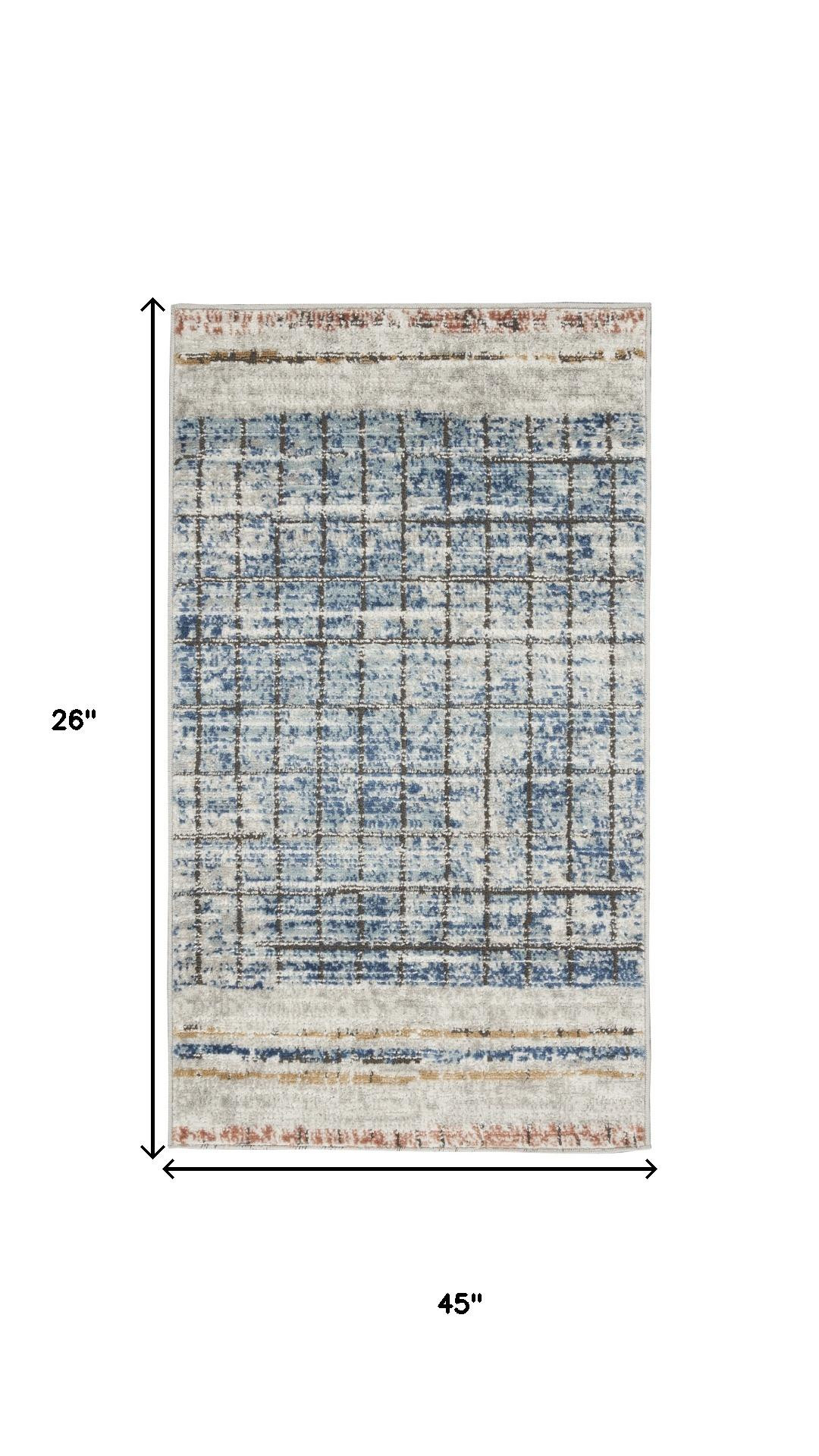 Set an inviting tone in your space with this 2' x 4' blue abstract power loom distressed non skid area rug. This rectangle shaped rug features a abstract design in blue to give it visual interest. A classic shape marries with good looking design for your space This superior Turkish rug represents the highest quality and is built to last. Area Rugs help to give warmth and sense of home to your space. .32" H x 26.00" W x 45.00" D