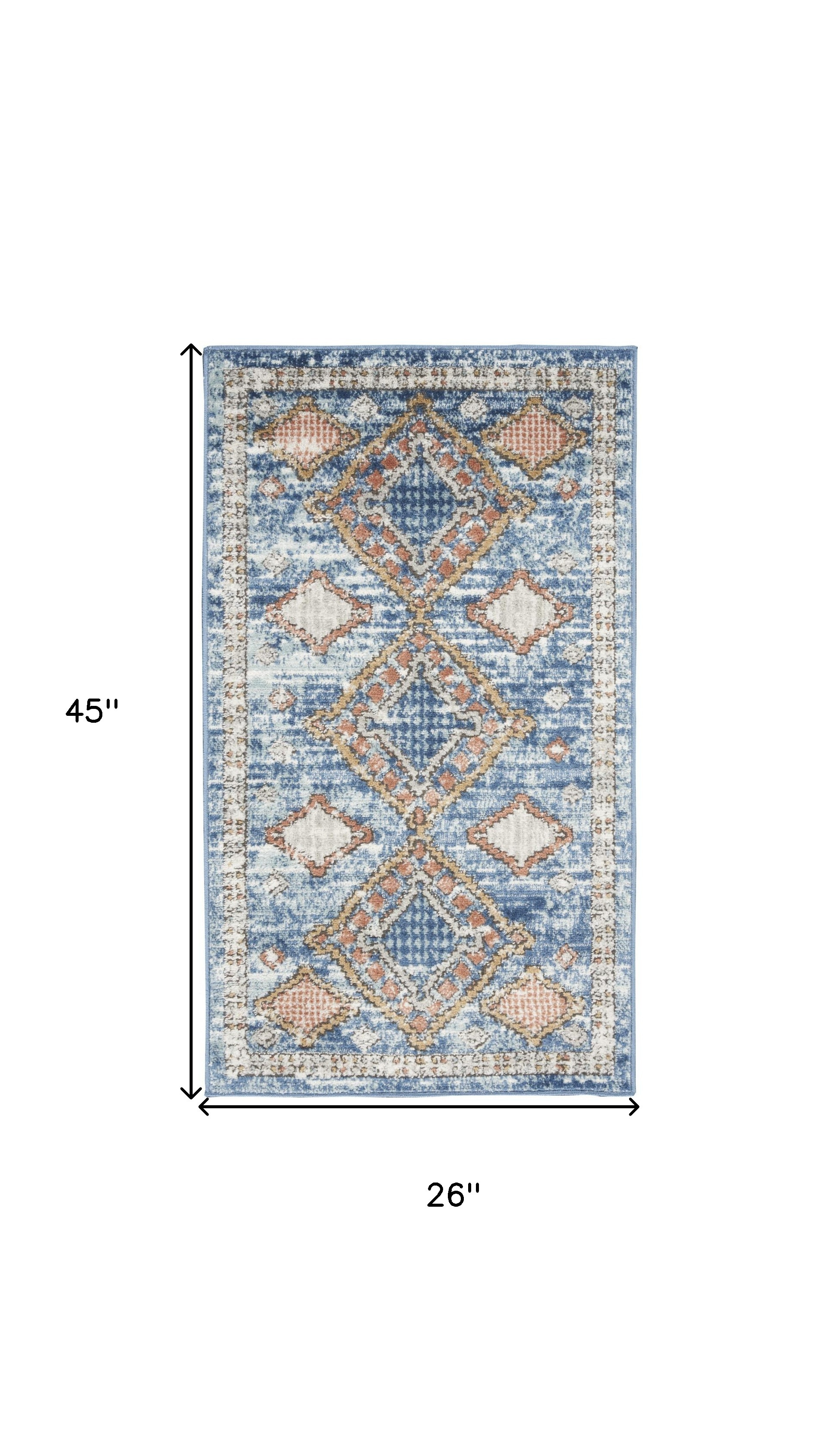 Set an inviting tone in your space with this 2' x 4' blue southwestern power loom non skid area rug. This rectangle shaped rug features a southwestern design in blue to give it visual interest. A classic shape marries with good looking design for your space This superior Turkish rug represents the highest quality and is built to last. Area Rugs help to give warmth and sense of home to your space. .32" H x 26.00" W x 45.00" D
