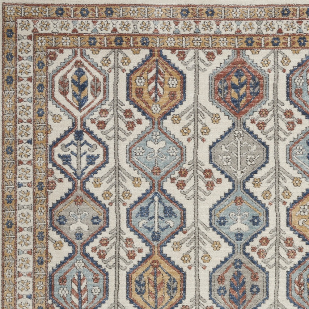 This 4-foot x 6-foot ivory southwestern power loom non skid area rug, is a great way to add warmth to a room. This rectangle shaped rug features a southwestern design that will add a functional and decorative accent to your space. This smaller sized rug is just what you need for your walkway, or in front of door, cabinet, refrigerator, or chair. 45-inch h x 69-inch w x 0.32-inch d