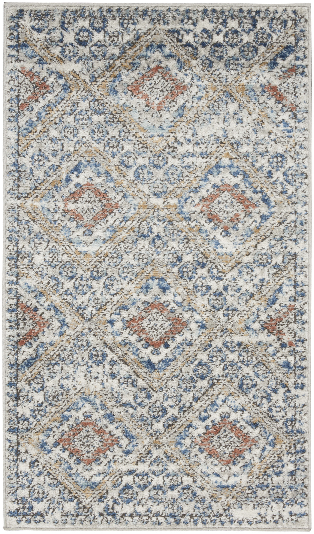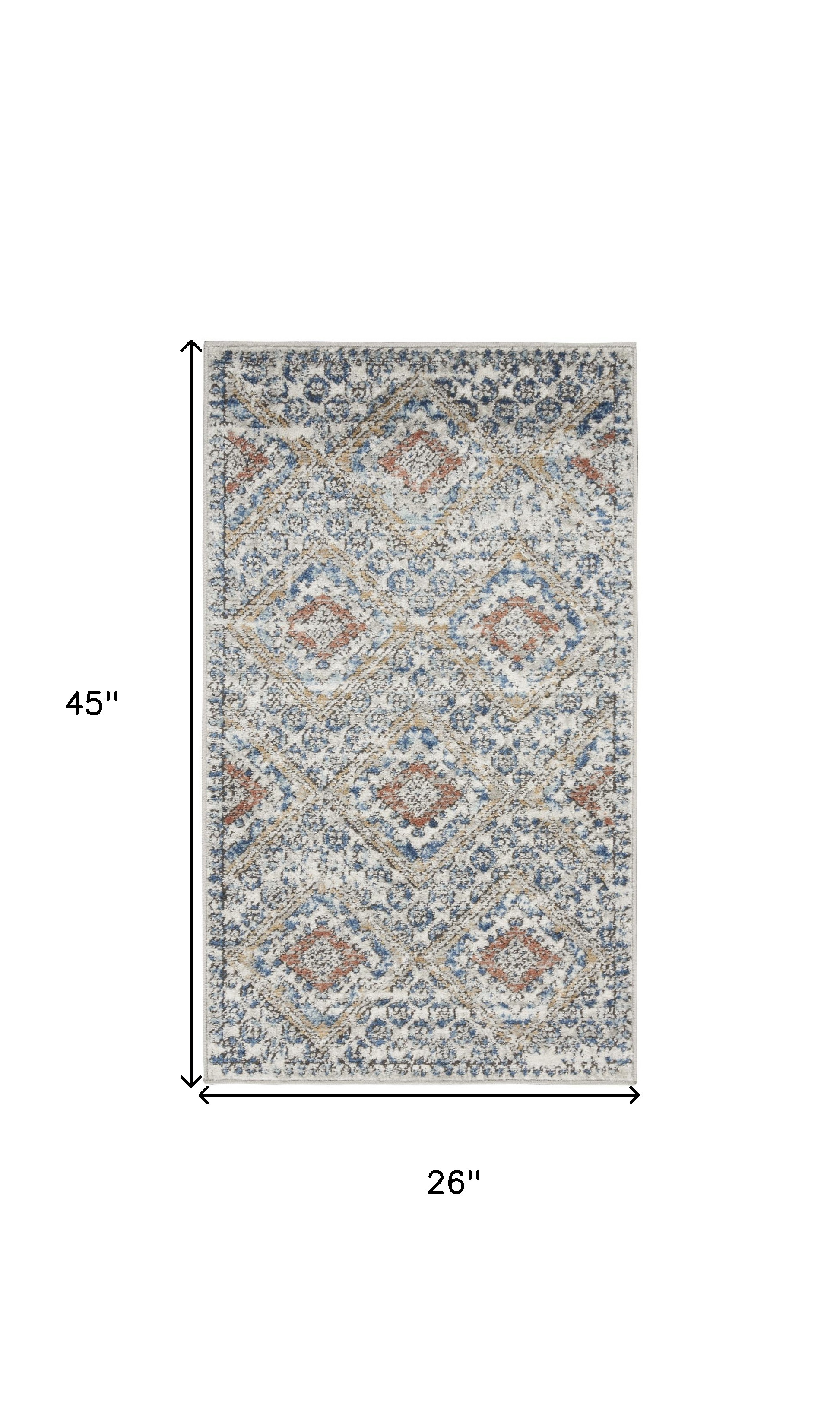 Set an inviting tone in your space with this 2' x 4' blue and ivory southwestern power loom non skid area rug. This rectangle shaped rug features a southwestern design in blue and ivory to give it visual interest. A classic shape marries with good looking design for your space This superior Turkish rug represents the highest quality and is built to last. Place this area rug against a hardwood or tile floor and it will enliven your living space with style and sophistication. .32" H x 26.00" W x 45.00" D