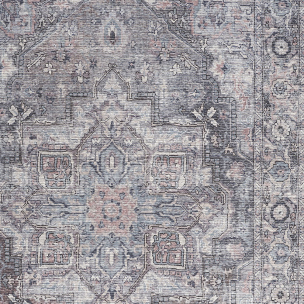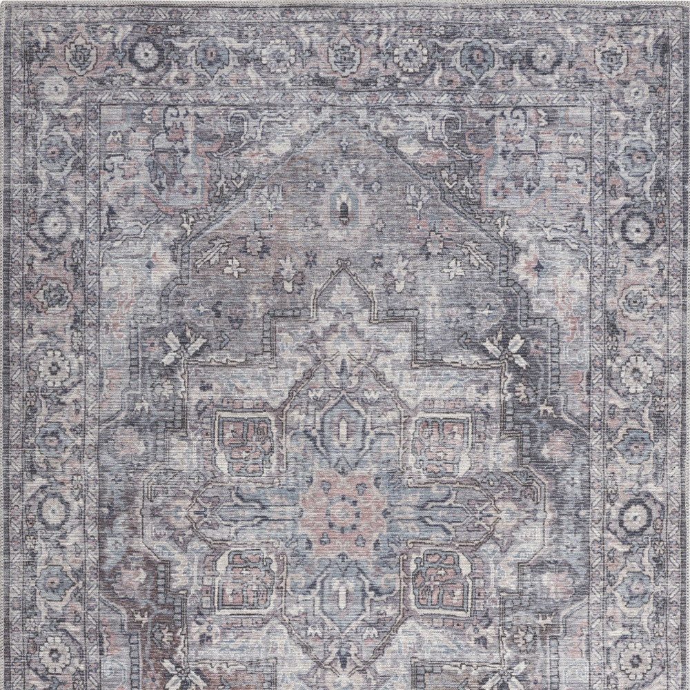 Add some artistry to your room with this 5' x 7' grey oriental power loom distressed washable area rug. This rectangle shaped rug features a oriental design in grey to give it visual interest. A classic shape marries with good looking design for your space This superior Turkish rug represents the highest quality and is built to last. Place this area rug against a hardwood or tile floor and it will enliven your living space with style and sophistication. .28" H x 63.00" W x 87.00" D