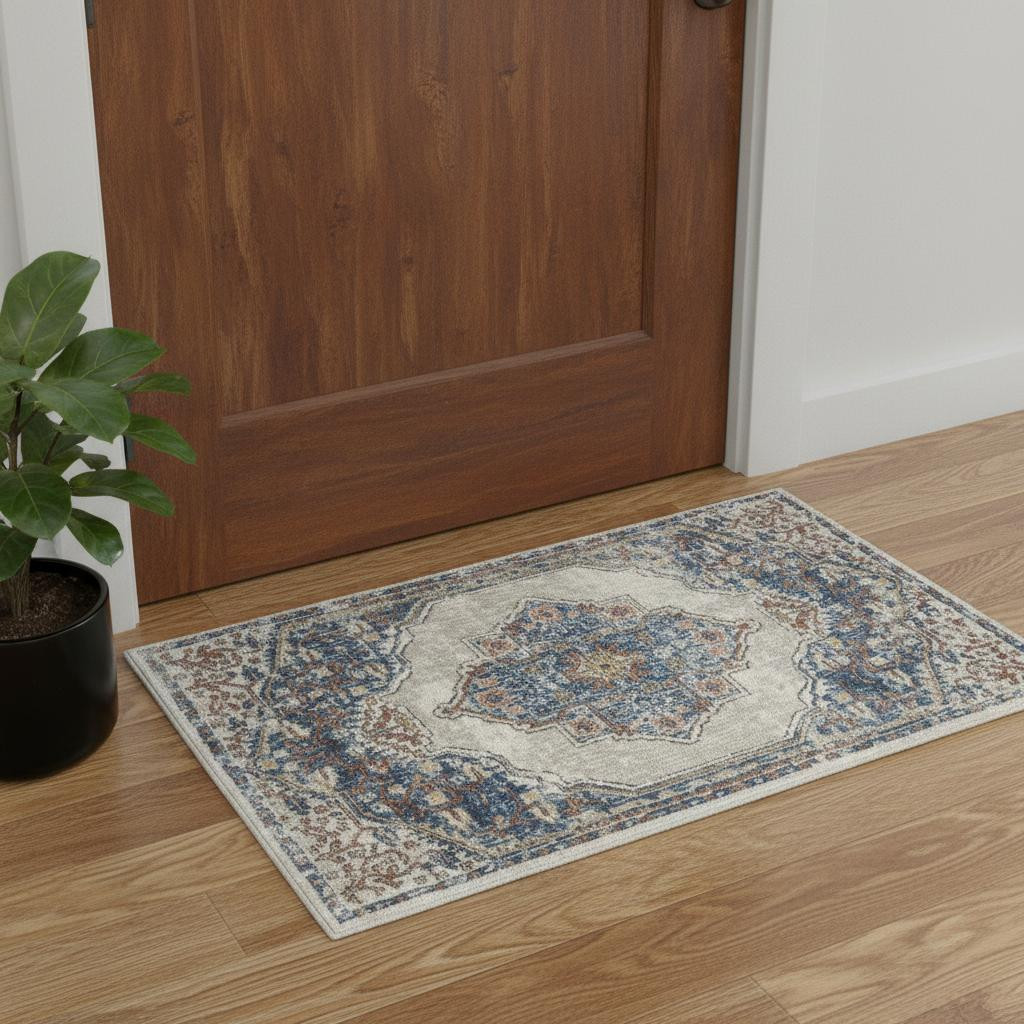 Add great coloration and comfortable texture to your space with this 3' x 5' blue and grey oriental power loom non skid area rug. This rectangle shaped rug features a oriental design in blue and grey to give it visual interest. A classic shape marries with good looking design for your space This superior Turkish rug represents the highest quality and is built to last. Area Rugs help to give warmth and sense of home to your space. .32" H x 36.00" W x 60.00" D