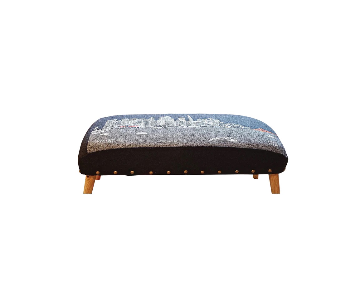 Optimize your space and add some charm to your room with the 38-inch gray wool and brown ottoman. Fine detailing such as nailhead trim give this ottoman a rich and elegant look easy to blend into most any room, a ottoman is a way to add a good looking accent to your space that can also be practical and useful. Crafted from high-quality wool, this upholstered piece features a stylish gray upholstery color and a sturdy rectangular shape. The brown legs provide a warm contrast, enhancing the overall aesthetic while ensuring durability for everyday use. 17-inch h x 38-inch w x 16-inch d.