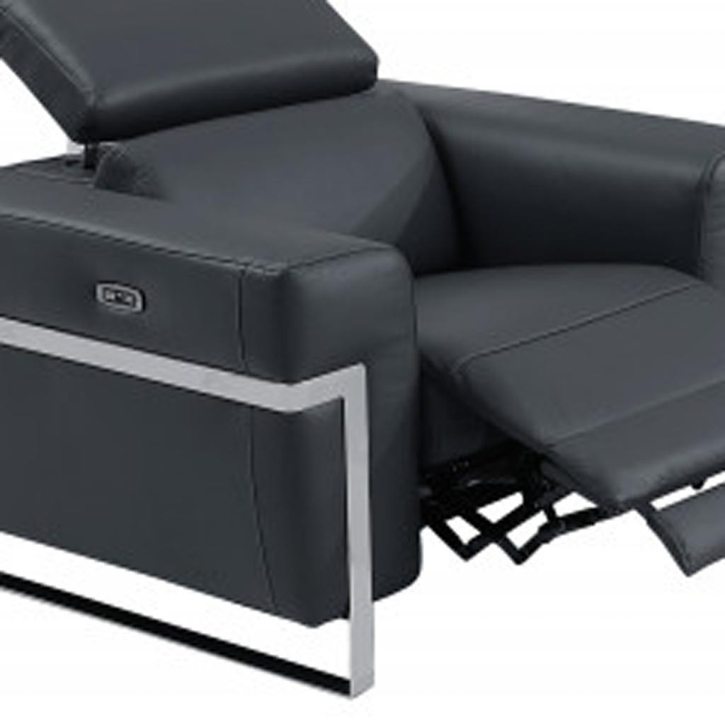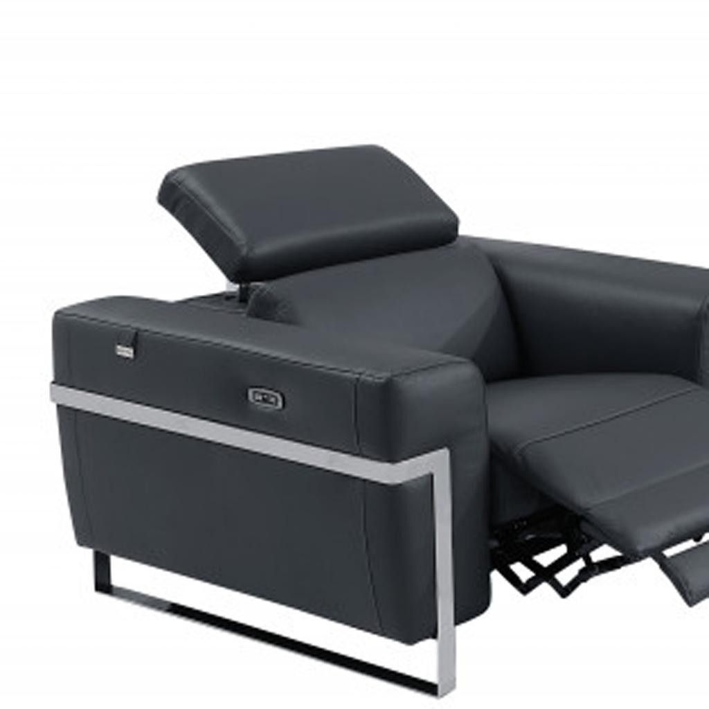 When it comes to indoor seating, this three piece indoor dark gray italian leather six person seating set has everything you need to get set and ready to relax. Prepare to enter the realm of ultimate relaxation with this reclining sofa that offers unparalleled comfort and luxurious lounging. Elevate your living space with durable, comfortable, and luxurious leather upholstery. The presence of coil spring seat construction helps distribute weight evenly, reducing pressure points and enhancing overall comfort by minimizing the strain on specific areas of the body. The inclusion of a loveseat into your mix allows a fashionable seating option in a compact design. Ready to re-decorate. This set is an obvious choice to fill your space with style and class. 40-inch H x 82.6-inch W x 43-inch D