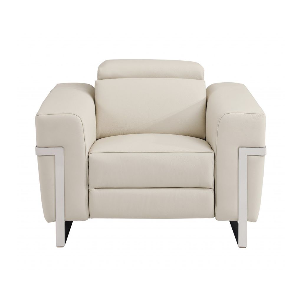 Step into a world of unparalleled seating comfort that is sure to dazzle even the toughest critic with our remarkable three piece indoor beige italian leather six person seating set. The reclining sofa will transform your space into a cozy haven for leisurely activities, movie nights, or even quick power naps. Upholstered in supple and luxurious genuine leather, this set has a rich and warm appeal. Coil spring seat construction provides excellent comfort by offering a responsive and supportive seating experience, gently contouring to the body's natural curves. The inclusion of a loveseat into your mix allows a fashionable seating option in a compact design. Chock full of value, this set has it all. 40-inch H x 82.4-inch W x 43-inch D