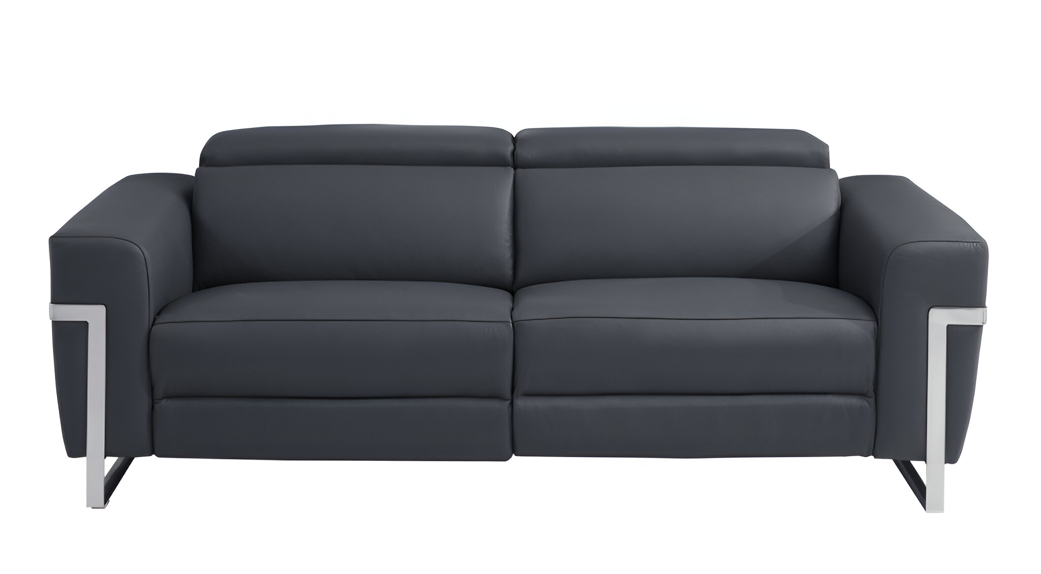 An interior designer's dream, this buttery soft high grade leather 83-inch dark gray italian leather usb reclining sofa with silver legs will bring just the right touch to your space. The premium leather used makes your lounging luxuriously comfortable and adds an elegant appeal to your space. Solid colors give you lots of decorative options and are easy to work into your decor scheme. Sinuous springs construction gives this piece strong support and makes it comfortable to sit even for long periods of time. Square arms offer a comfy place to rest. Silver stainless steel legs effortlessly elevate the room and add a touch of contemporary design. Built to last, this sofa will be a great centerpiece for your room. 31-inch H x 83-inch W x 43-inch D