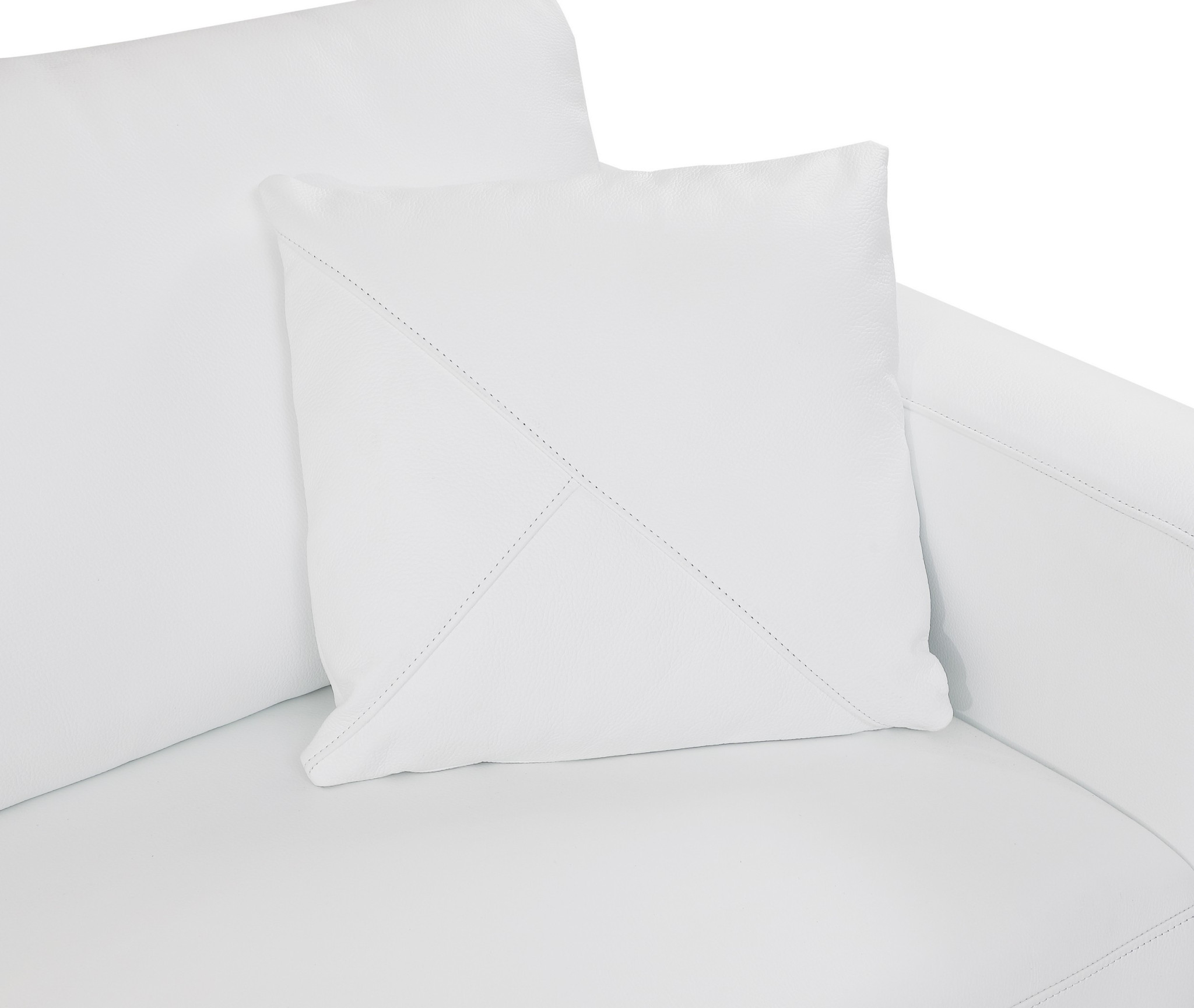Made of the highest quality, supple leather, this white italian leather reclining l shaped two piece corner sectional will be the star of your space. The high-grade premium leather used makes your lounging luxuriously comfortable and adds an elegant appeal to your space. Solid colors give you lots of decorative options and are easy to work into your decor scheme. Square arms offer a comfy place to rest. Silver metal legs effortlessly elevate the room and add a touch of contemporary design. A great showpiece for your room, this sectional is a must have. 35-inch H x 117-inch W x 40-inch D