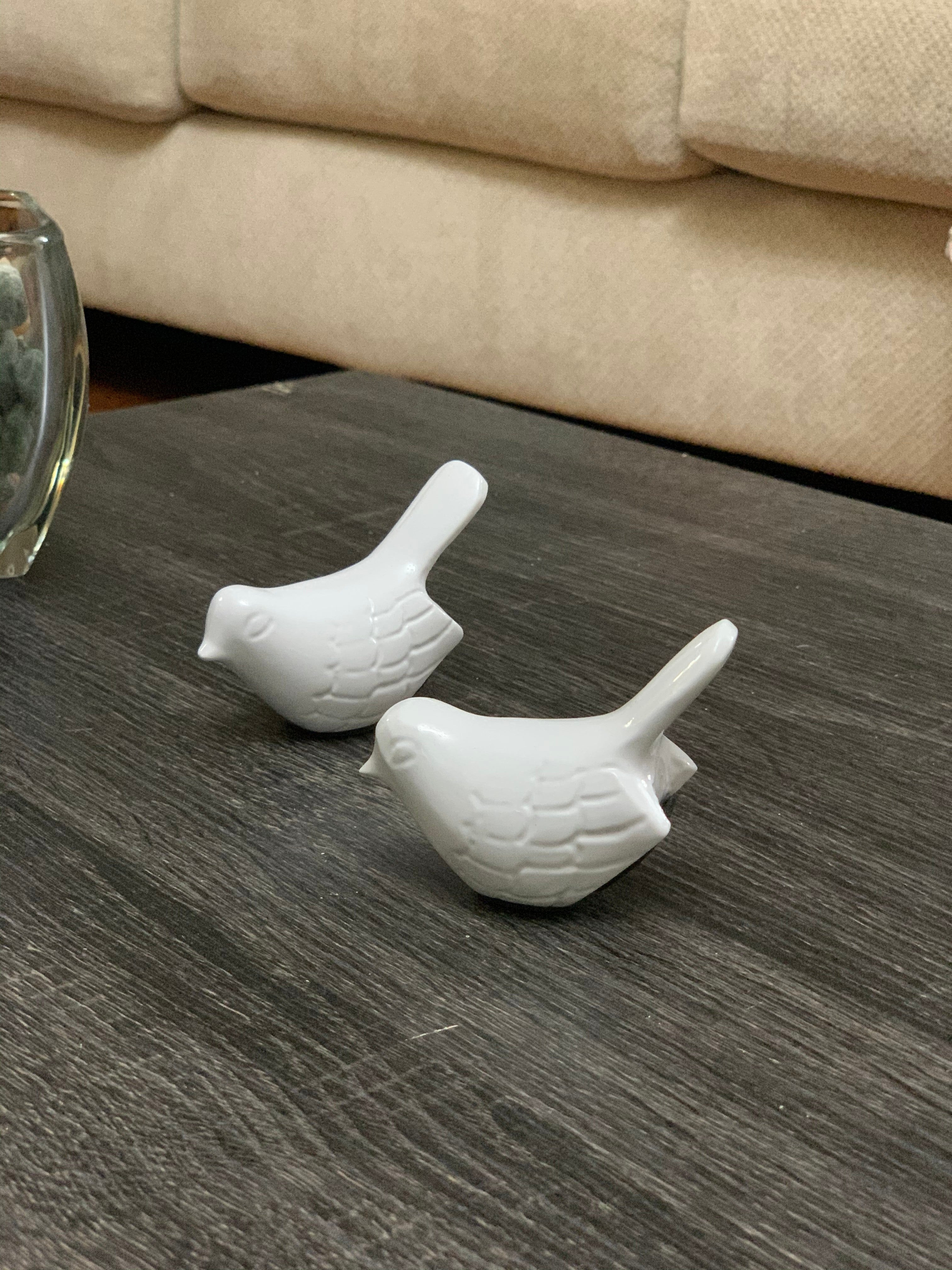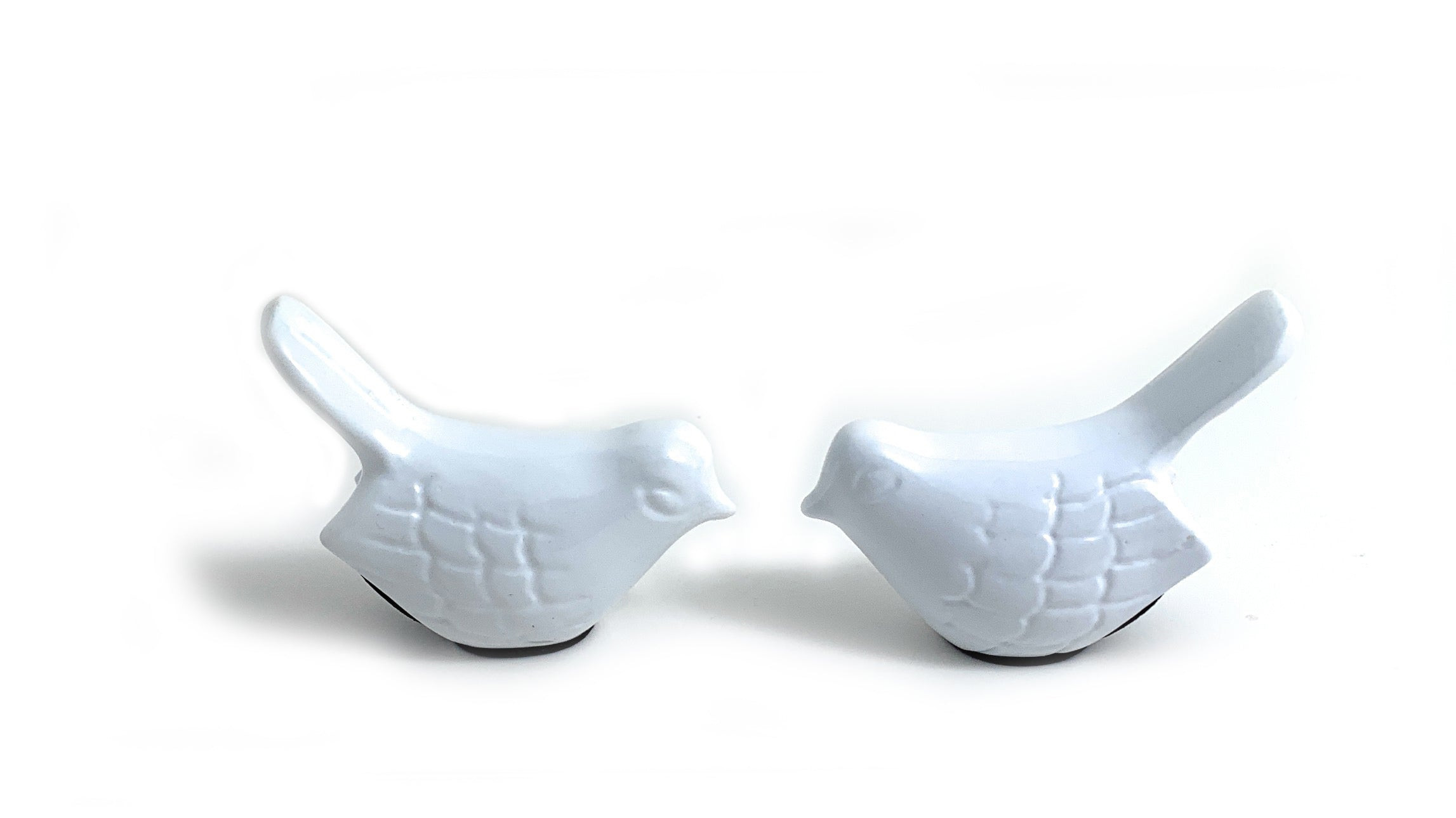 The set of two white metal bird tabletop sculpture brings a touch of elegance to your home decor. Crafted from durable metal, each piece showcases exquisite handmade artistry that enhances its contemporary appeal. This charming set features two intricately designed bird sculptures, perfect for adding personality to any tabletop. With a focus on animal subjects, the pieces celebrate the beauty of nature through modern design elements. Their sleek white finish allows them to seamlessly blend with various interior styles, making them versatile decorative accents. Ideal for bird lovers or those looking to elevate their decor, this set serves as a delightful conversation starter while adding a unique aesthetic to your living space. 2.20-inch h x 1.50-inch w x 2.20-inch d.