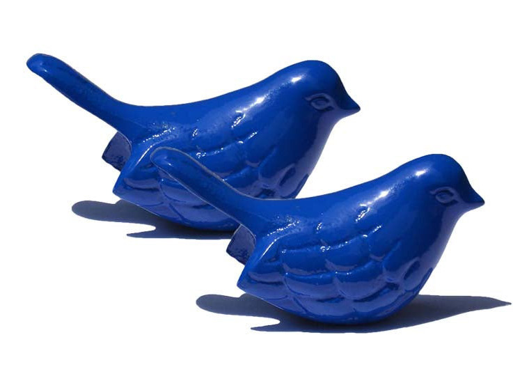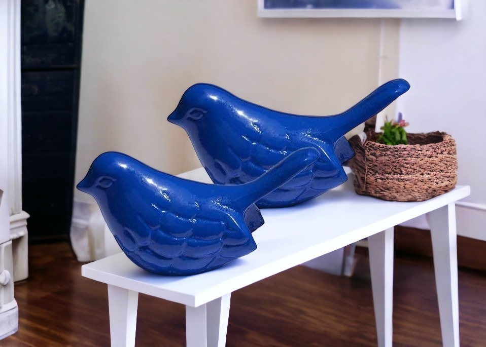 Bring some sizzle to your space with this eye-catching set of two blue metal bird tabletop sculpture. This pretty bird brings a touch of elegance and some outdoor beauty to your space. Great to use on its own or mix with other decorations for the perfect look. 2.20-inch h x 1.50-inch w x 2.20-inch d.