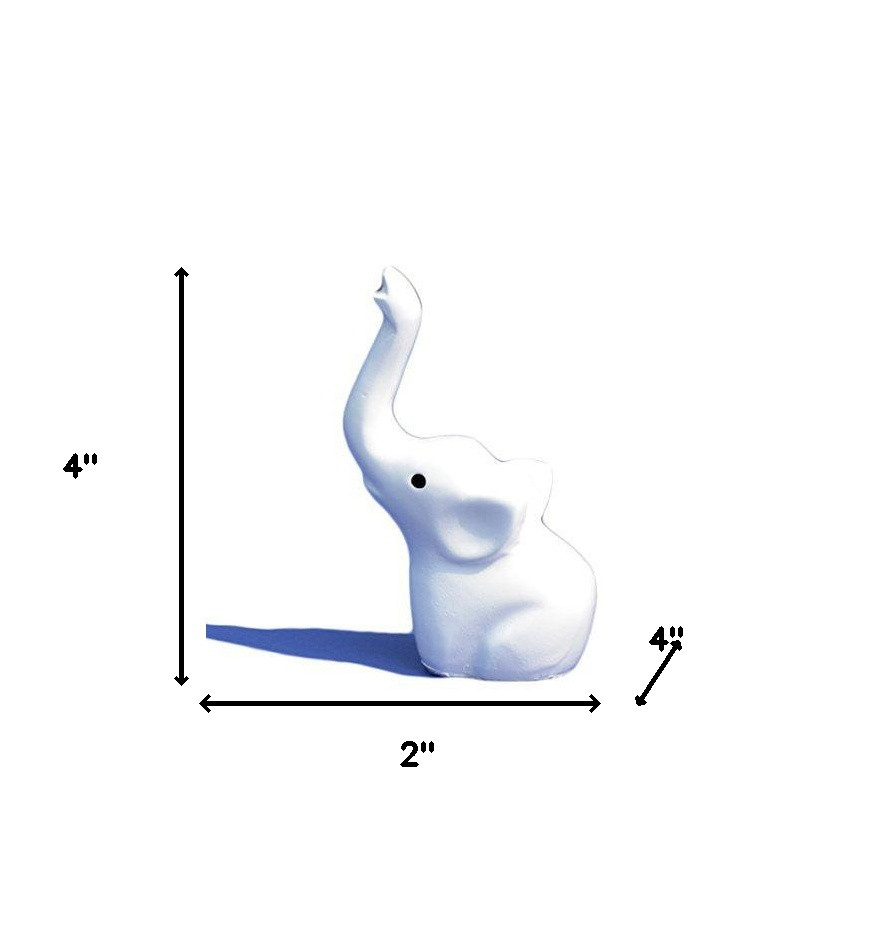 Bring some sizzle to your space with this eye-catching 4-inch white metal elephant elephant figurine tabletop sculpture. This white colored piece is made from high grade metal. Bring a little bit of the exotic jungle indoors with this good looking elephant accent. Bring a little bit of the exotic safari indoors with this good looking elephant accent. A perfect decorative addition for anyone who loves a stylish look and feel. 4-inch h x 2-inch w x 4-inch d.