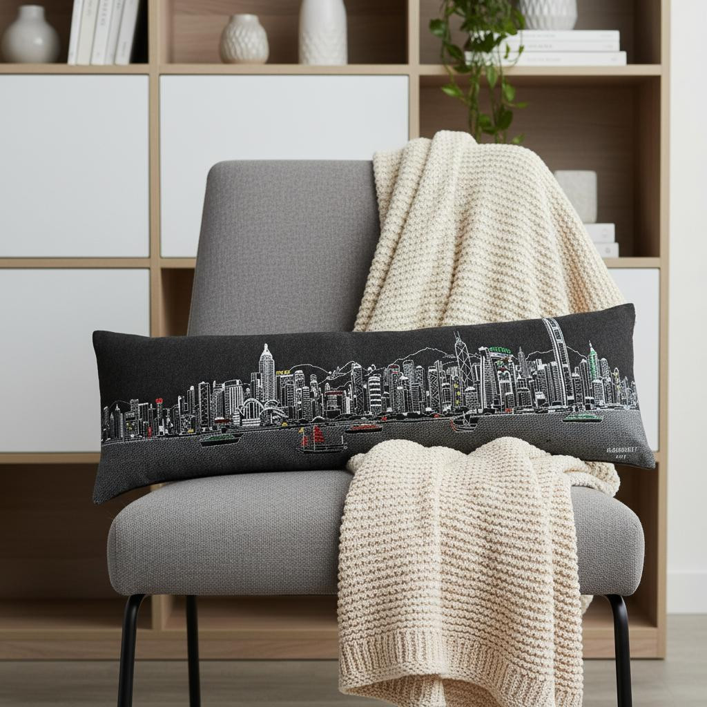 Showcase one of the most famous cities in the world with our Hong Kong Nighttime Skyline Lumbar Decorative Pillow. This Nighttime view of Hong Kong from Causeway Bay, is a stunning way to represent one of the most important and travelled cities in the world. The gorgeous art features famous architecture and landmarks rendering a modern whimsical way to bring this iconic cityscape to life. Made of a wool/nylon blend, this high quality stitched decorative pillow features embroidered artwork mixed with pops of color that highlight important and recognizable icons from this fabulous city. This pillow makes a great gift, decorative accent and conversation piece. 14-inch H x 45-inch W x 4-inch D