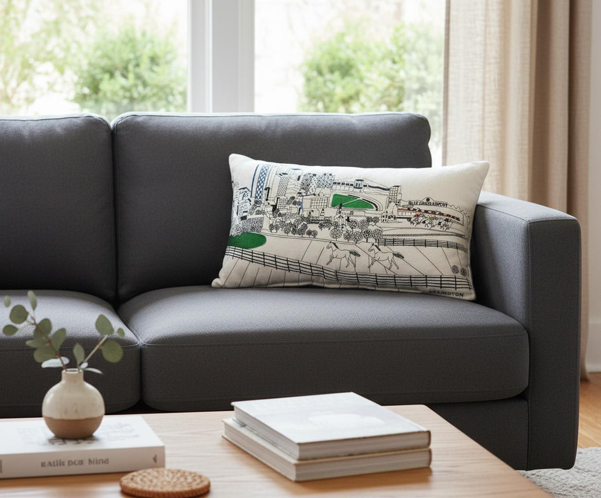 Showcase this famous city, with our Lexington Daylight Skyline Lumbar Decorative Pillow. The daylight view of Lexington, is picture perfect. The gorgeous art features many famous landmarks and references for this destination city, rendering a modern whimsical way to bring this iconic city to life. Made of a wool/nylon blend, this high quality stitched decorative pillow features embroidered artwork mixed with pops of color that highlight important and recognizable icons from this popular city. This pillow makes a great gift, decorative accent and conversation piece. 14.00-inch h x 24.00-inch w x 4.00-inch d.