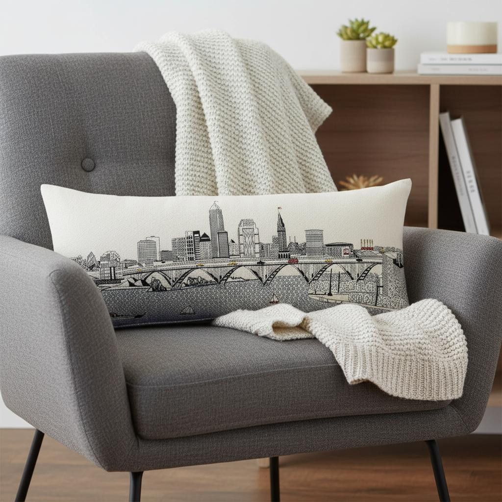 daylight skyline lumbar decorative pillow, skyline lumbar decorative pillow, lumbar decorative pillow, cleveland daylight skyline lumbar decorative, white cleveland daylight skyline lumbar |