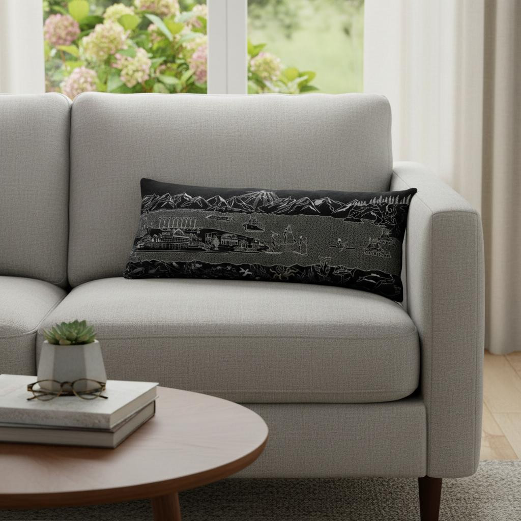 Showcase this famous Alaskan city, with our Homer Spit Skyline Lumbar Decorative Pillow. The night time view of Homer Spit is picture perfect. The gorgeous art features many famous landmarks and references for this destination city that is surrounded by the Kachemak Bay, rendering a modern whimsical way to bring this iconic city to life. Made of a wool/nylon blend, this high quality stitched decorative pillow features embroidered artwork mixed with pops of color that highlight important and recognizable icons from this popular Michigan city. This pillow makes a great gift, decorative accent and conversation piece 14-inch H x 35-inch W x 4-inch D