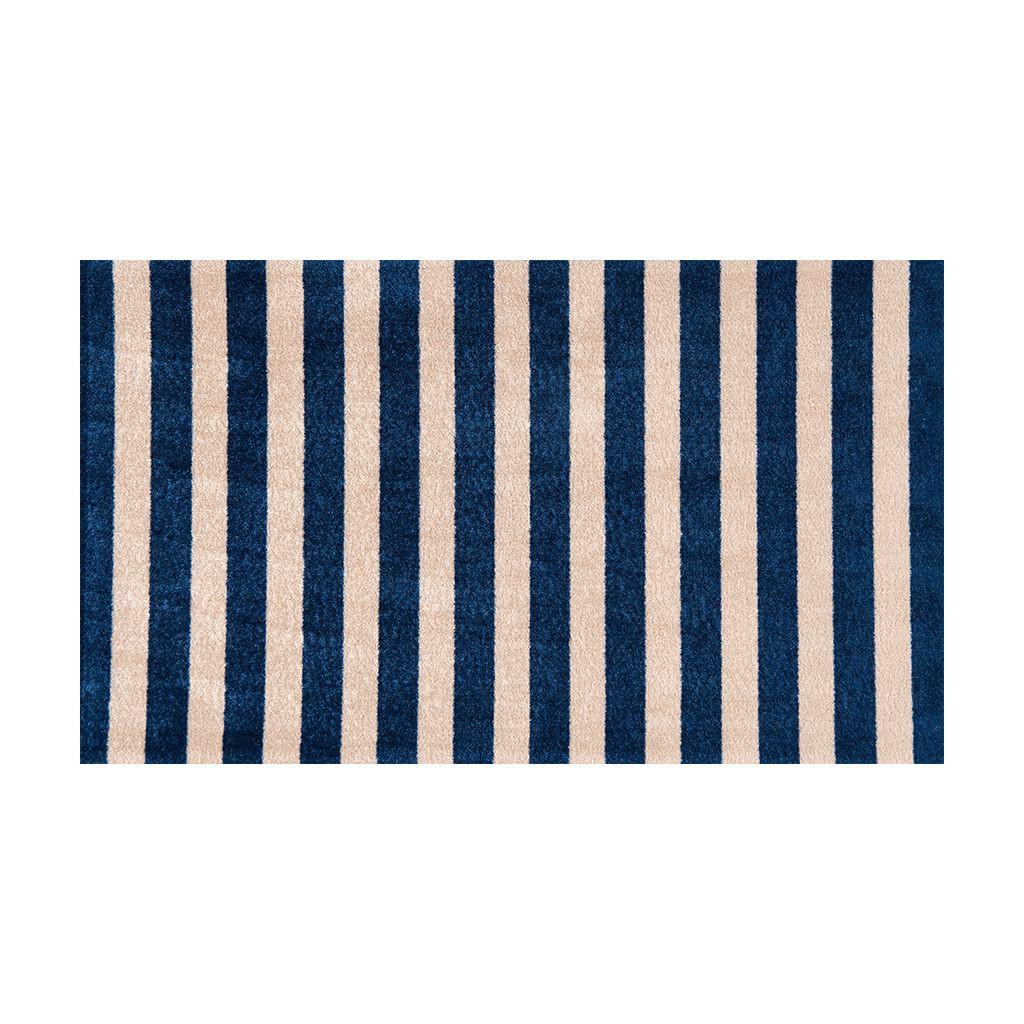 Set an inviting tone in your space with this 2' x 4' navy and sand striped tufted washable non skid area rug. This rectangle shaped rug features a striped design in navy and sand to give it visual interest. A classic shape marries with good looking design for your space Ideal for spaces with kids and pets, this rug is stain resistant to help repel stains and spilled liquids. Area Rugs help to give warmth and sense of home to your space. 0.25" H x 27.5" W x 47" D