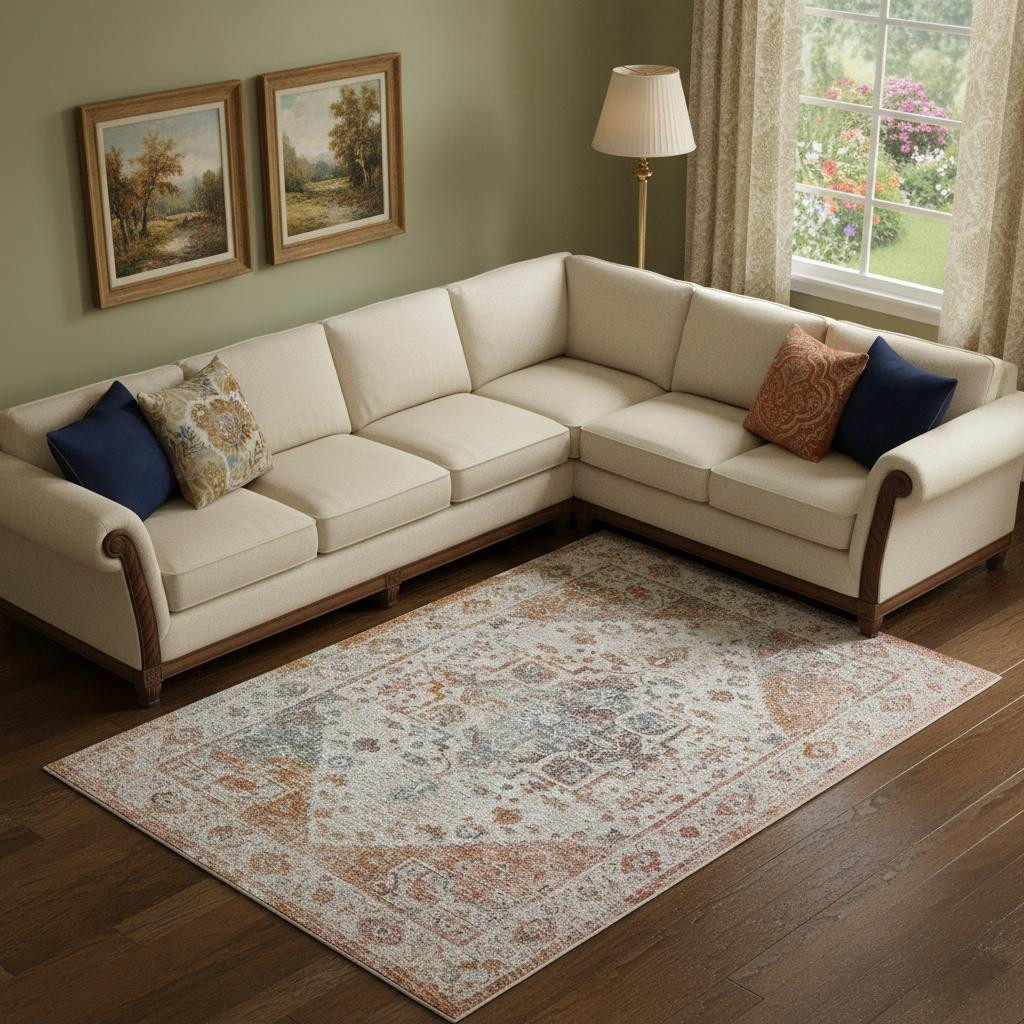 Add some artistry to your room with this 9-foot x 12-foot beige indoor outdoor area rug. Versatile in use, durable, and easy to maintain, this rug is an ideal solution to add a decorative and inviting touch to your indoor or outdoor space. Constructed using high-quality machine-made techniques, this rectangle-shaped rug provides a stylish foundation for any seating area. Its neutral beige hue seamlessly complements various decor styles, making it the perfect choice for enhancing your outdoor aesthetic while ensuring long-lasting beauty. 108-inch h x 144-inch w x 0.3-inch d.
