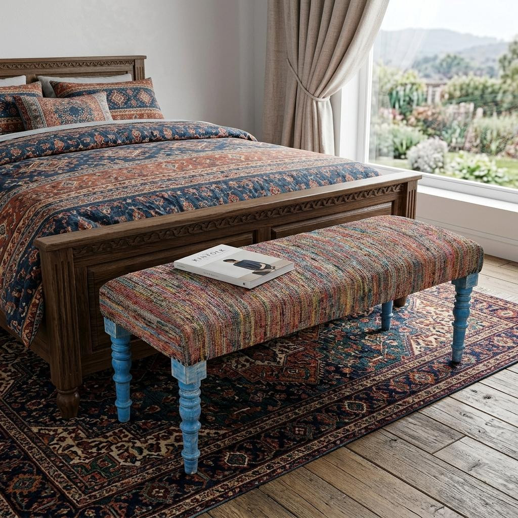 Bench, Seating, Accent, Accessory, Décor, Home, Lounge, Living Room, Guest Room, Bed Stool, Distressed, Globally Inspired, Eclectic, Bohemian, Colorful, Multi |